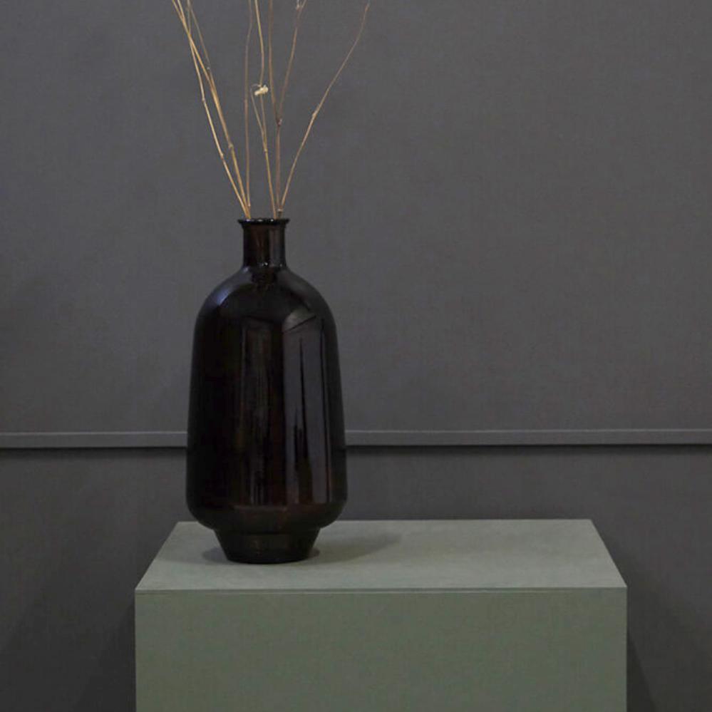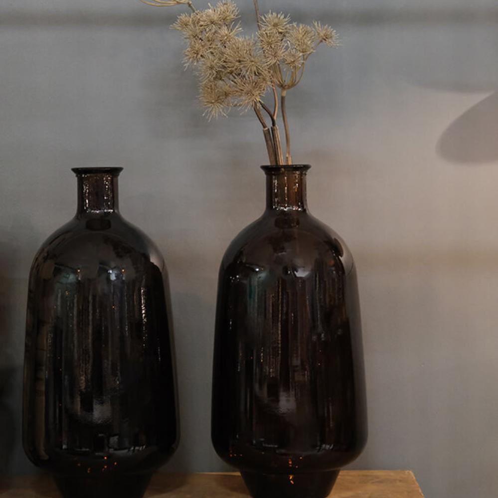 Here you find a large beautiful and bottle-shaped floor vase in a chocolate brown shade with an artistic balloon effect. The beautiful floor vase in glass is tall and slender, and can either stand alone or with other vases and jars in other materials. This floor vase of 60 cm is perfect for seasonal branches or dried flowers. With a beautiful floor vase like this, you can add a sophisticated and nice style to your decor.