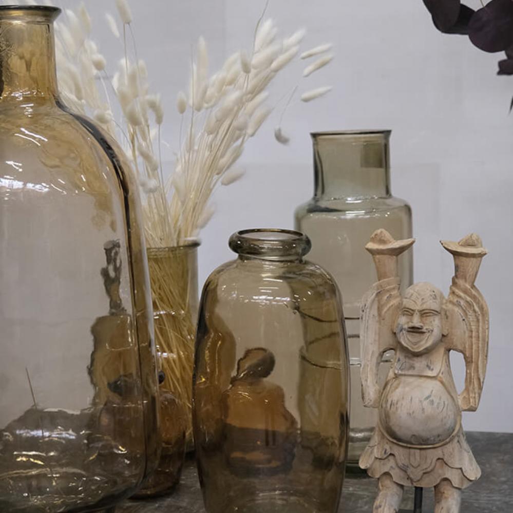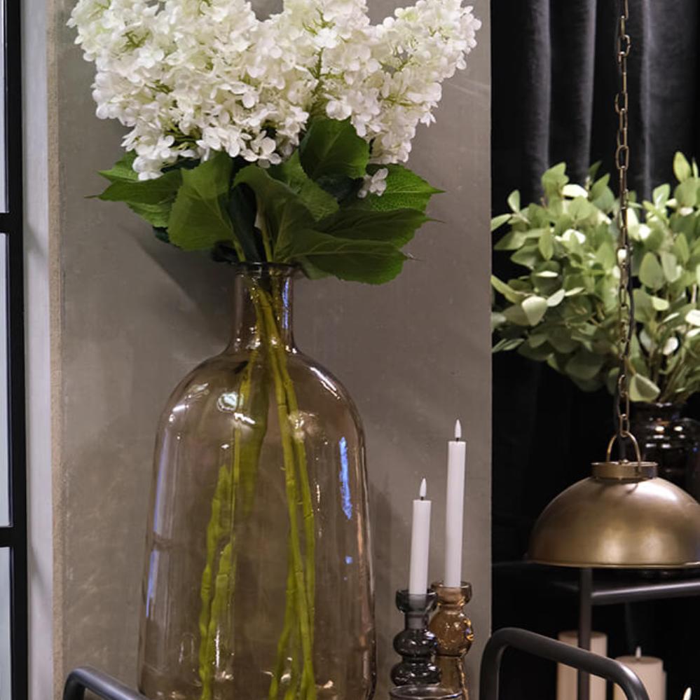 Here you find a large beautiful and bottle-shaped floor vase in a smoke shade with an artistic balloon effect. The beautiful floor vase in glass is tall and slender, and can either stand alone or with other vases and jars in other materials. This floor vase of 60 cm is perfect for seasonal branches or dried flowers. With a beautiful floor vase like this, you can add a sophisticated and nice style to your decor.