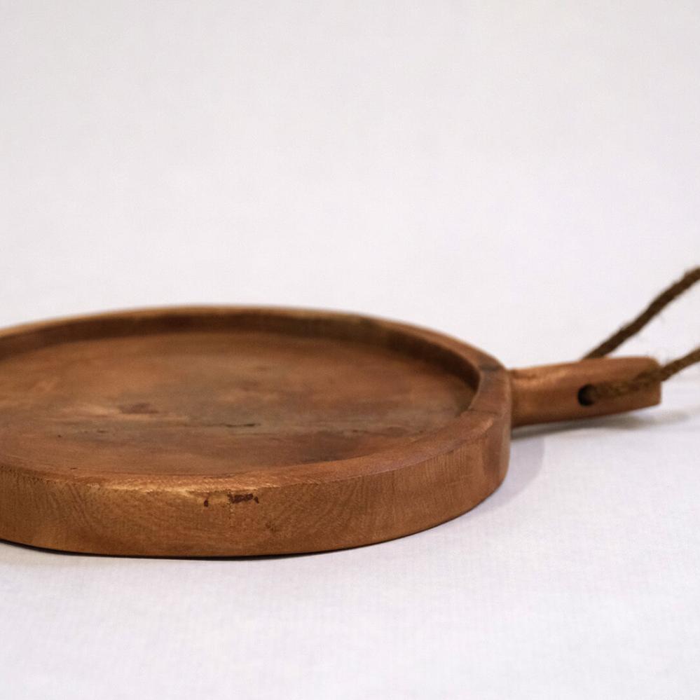 Round wooden serving board. Give your guests an inspiring dining experience with a rustic and unique presentation. This serving board can elevate the presentation of a good tapas, sushi or pastry. Clean it with soap and water. You will extend the duarability by using vegetable oil on the board. Not suitable for dishwashers.