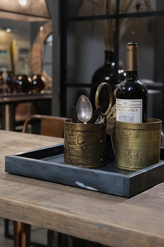 A charming and rustic container with a beautiful brass finish and a practical top handle for easy mobility. The container features a raw look with plenty of patina and can be used for various purposes – from storing cutlery and kitchen utensils to organizing office supplies. It’s also ideal for herbs or small plants; just use a liner, as it’s not waterproof. A timeless and functional detail for the home, workplace, or café. The container itself is 11 cm high.
