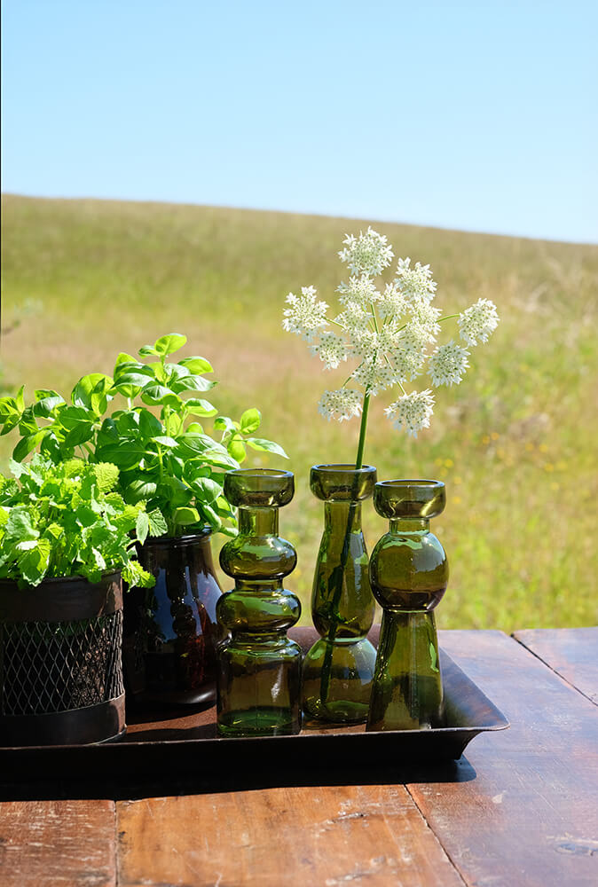 The dark, mysterious Liu vase is undeniably beautiful. With its layered design and gorgeous, olive green shades, it is both delicious and decadent. It's perfect for those who love a bit of drama and aren't afraid to let their decor go undercover in the dark. You can find the Liu vase in olive green, grey, smoke, and chocolate. Create your own "Charlies Angels" still life by mixing and matching it with the other vases in the series. Search for Barrymore and Dias in the search field.