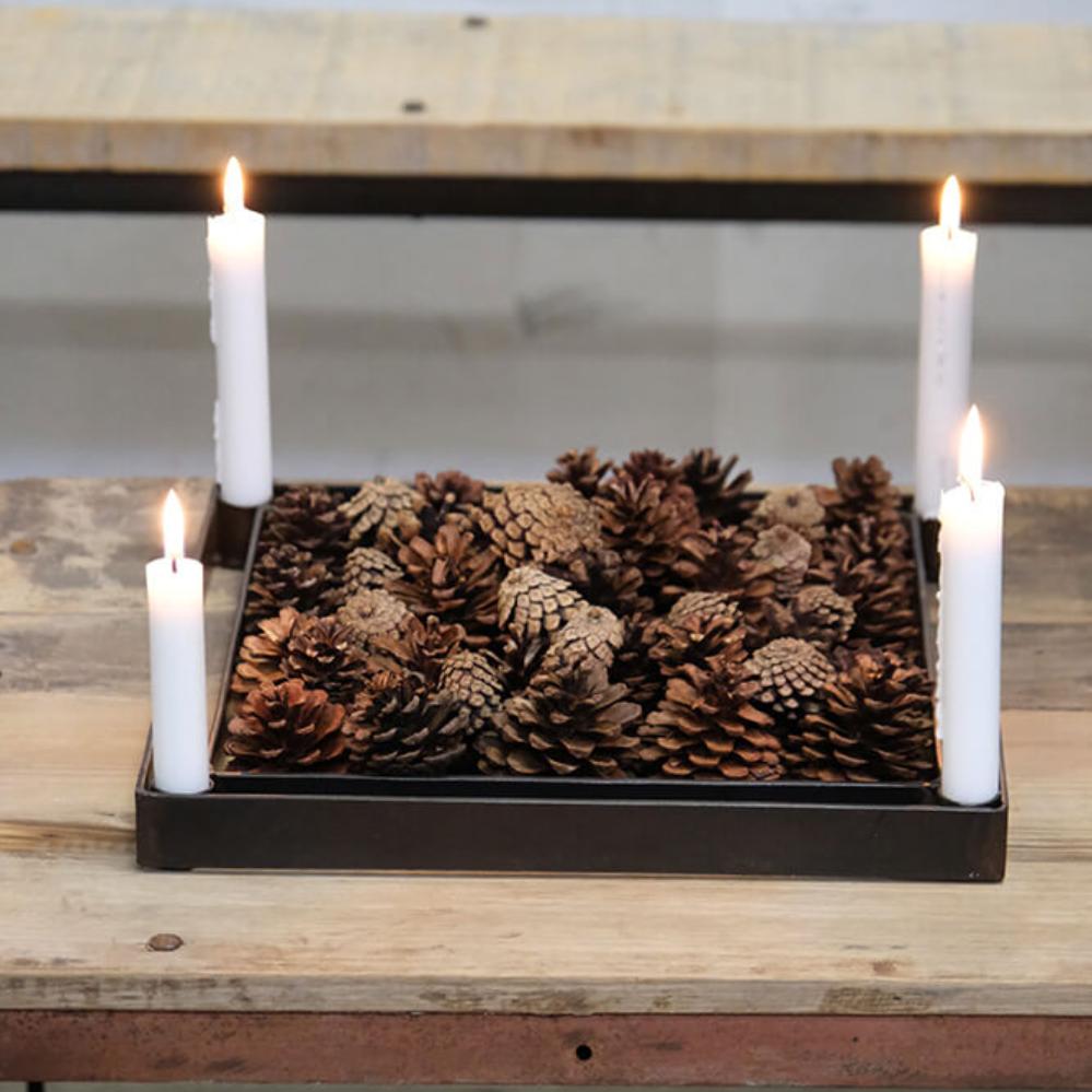 Square Advent candle holder for 4 candles. The Advent candle holder from Trademark Living is made of iron and exudes an industrial and raw look in itself. It can function as a cool Advent candlestick, but can easily be used all year round. If you hang it in the ceiling, you can replace branches and other natural decorations according to the season. If you leave it on the table, you can replace the candles according to the season's trend and possibly add Christmas balls, Easter decorations, summer flowers or create a spooky Halloween decoration. The possibilities are endless.