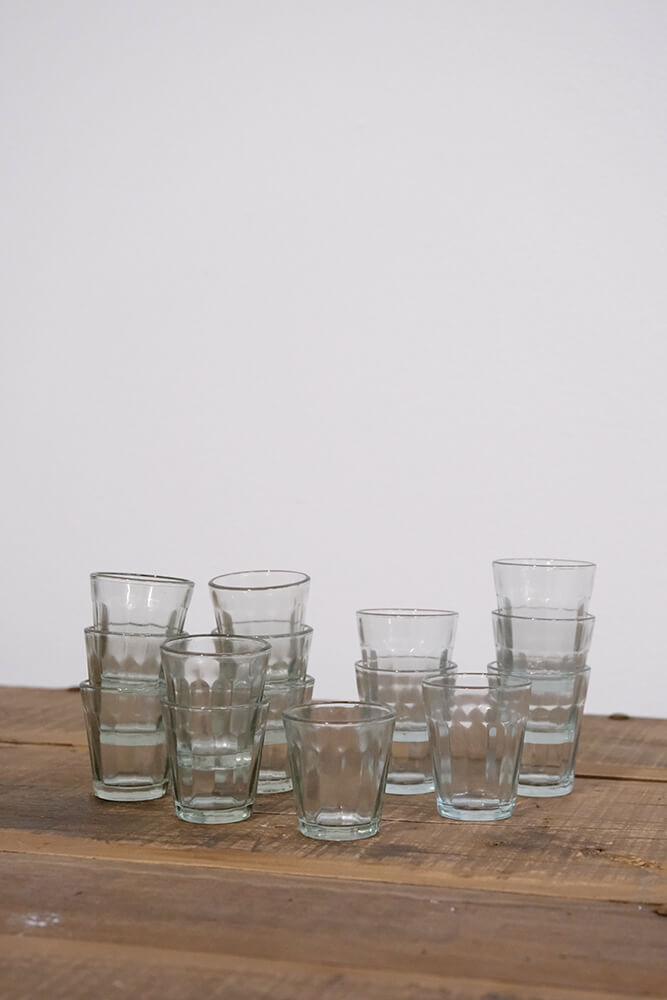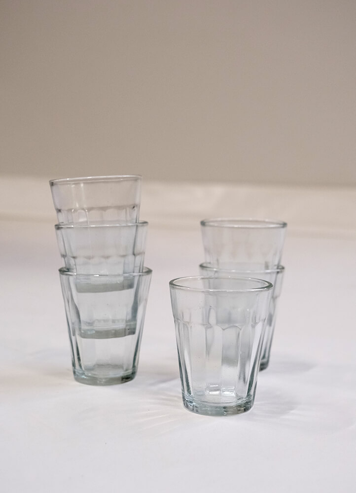 Bring a touch of nostalgia and warmth to your table setting with these charming drinking glasses made of clear, thick glass. Their size makes them ideal for everything from a cold refreshment to small tastings or cozy evenings, where they can be used for tonic, juice, or homemade shots. Naturally, they are dishwasher-safe, giving you both charm and practical functionality in one. Their sturdy structure makes them durable for everyday use, and they can easily be stacked to save space in the kitchen. These glasses are more than just drinking glasses – they are everyday favorites that add warmth and character to your home and invite cozy moments again and again.