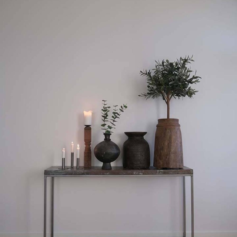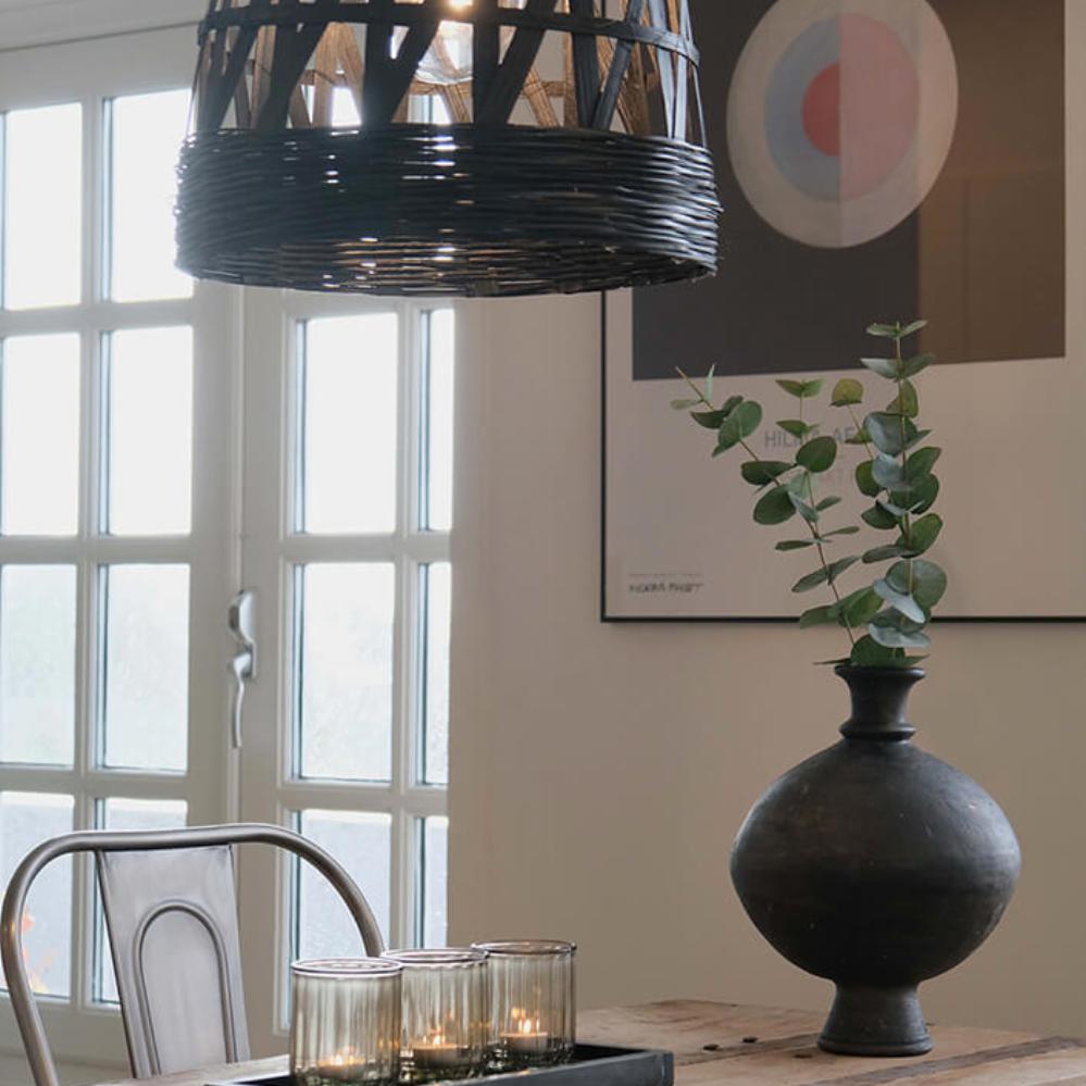 Bottle-shaped clay vase with a rustic dark look. Use the clay vase for everything from natural branches, artificial flowers or simply as a decorative expression by itself. The vase is beautiful together with one or more of our clay pots with the same patina (No. D16274-D16277). They can create a rustic or more feminine look depending on which decorative elements you add.