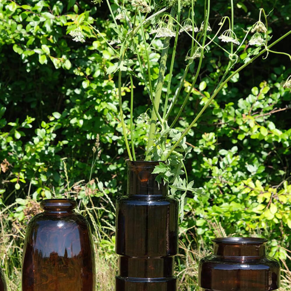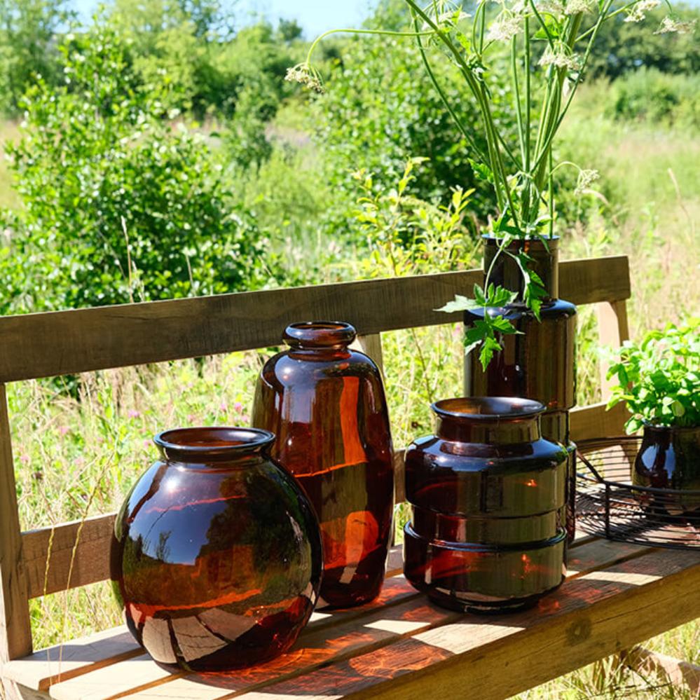 This stylish, beautiful chocolate coloured glass vase is a sculpture in itself and fits perfectly into the modern décor. The glass vase is beautiful with flowers, rustic branches or it can be placed on the table with other decorative items of different sizes, shapes and colors creating a personal and vibrant look. The vase is made of recycled glass.