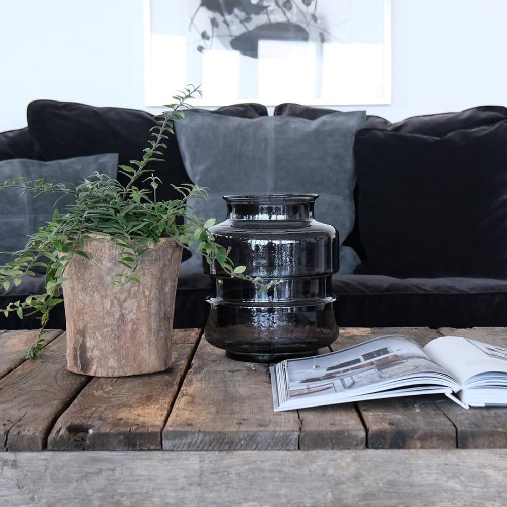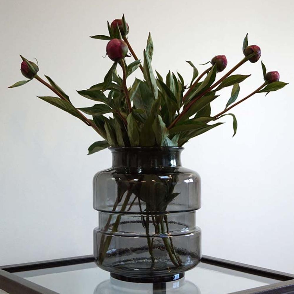 This stylish, beautiful glass vase is a sculpture in itself and fits perfectly into the modern décor. The glass vase is beautiful with flowers, rustic branches or it can be placed on the table with other decorative items of different sizes, shapes and colors creating a personal and vibrant look. The vase is made of recycled glass.