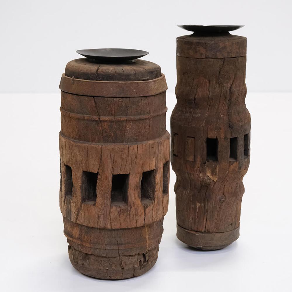 Light spreads warmth, atmosphere and cosiness like nothing else. Therefore, your candles also deserve a very special candlestick, which compliments and enhances the mood. With these candlesticks made from the wheel hubs from old wooden wheels, your candles get a rustic and charming platform from which they can spread warmth and coziness to the whole room. The candlesticks are upcycled from different wooden wheels and can therefore vary in size: Height 25-40 cm. Diameter 14-20 cm.