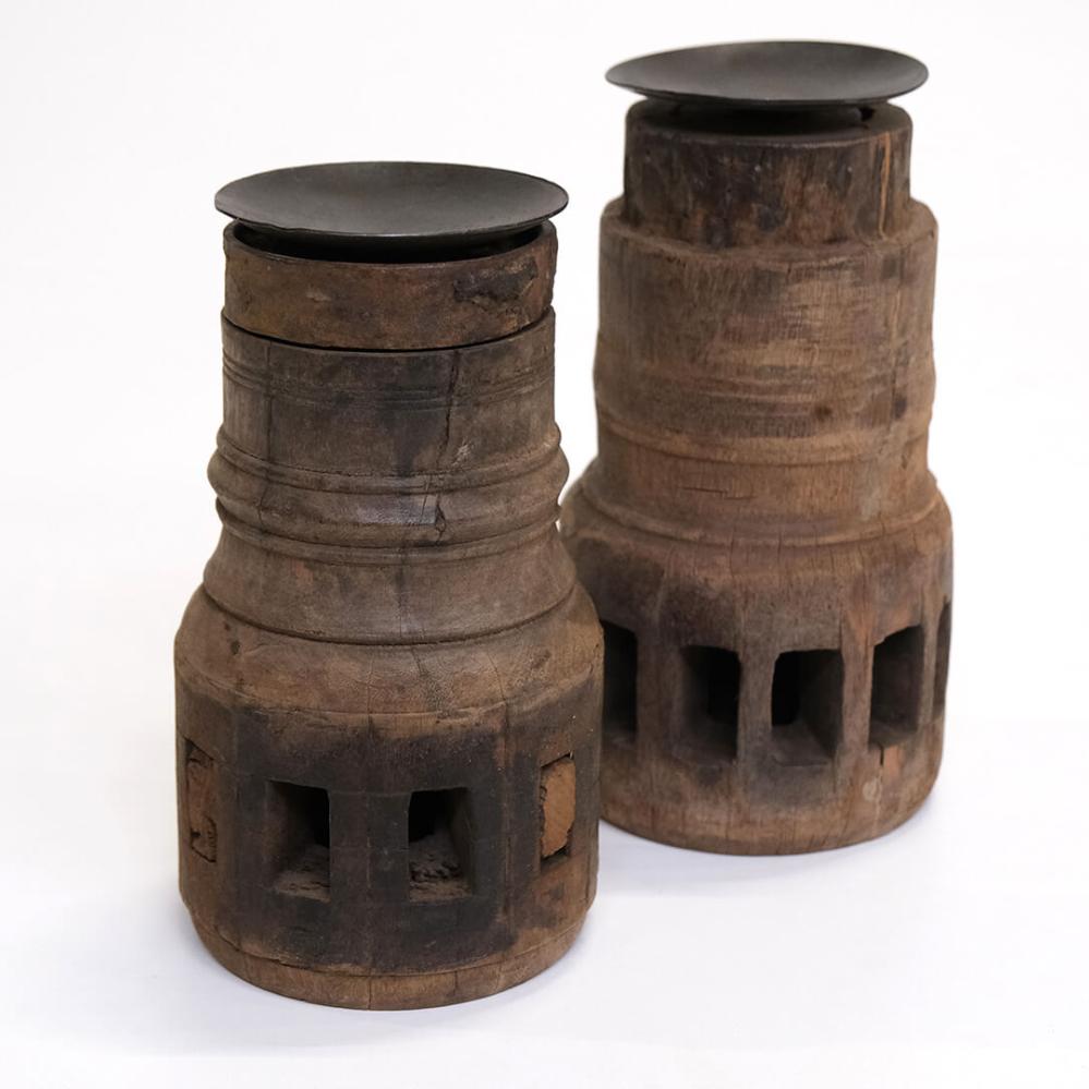 Light spreads warmth, atmosphere and cosiness like nothing else. Therefore, your candles also deserve a very special candlestick, which compliments and enhances the mood. With these candlesticks made from the wheel hubs from old wooden wheels, your candles get a rustic and charming platform from which they can spread warmth and coziness to the whole room. The candlesticks are upcycled from different wooden wheels and can therefore vary in size: Height 20-25 cm. Diameter 12-15 cm.