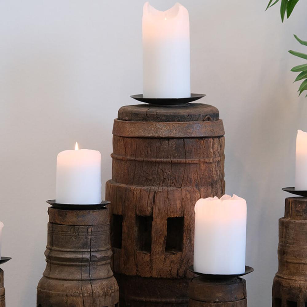 Light spreads warmth, atmosphere and cosiness like nothing else. Therefore, your candles also deserve a very special candlestick, which compliments and enhances the mood. With these candlesticks made from the wheel hubs from old wooden wheels, your candles get a rustic and charming platform from which they can spread warmth and coziness to the whole room. The candlesticks are upcycled from different wooden wheels and can therefore vary in size: Height 10-15 cm. Diameter 8-10 cm.