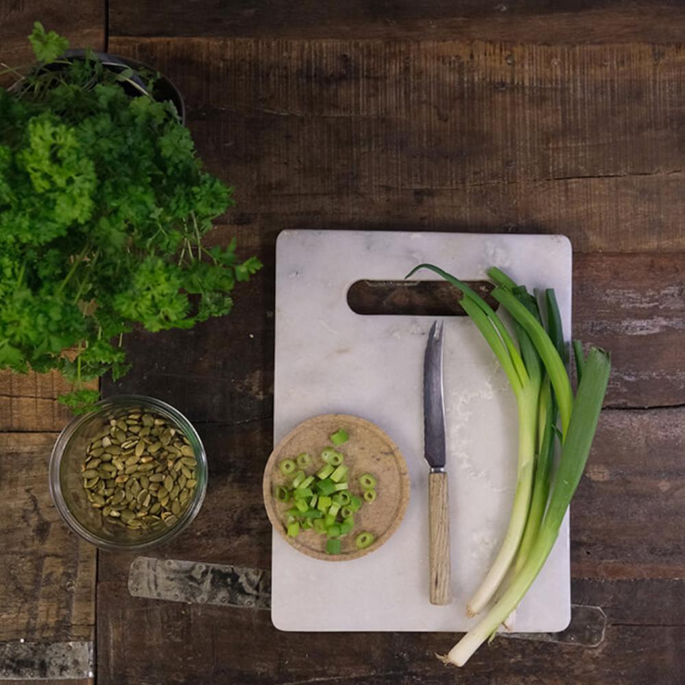 You can use both sides of this marble chopping board and the practical handle makes it easy to move around. When not in use, this beautiful marble board is a lovely decorative element to display in your kitchen. Use this beautiful chopping board for serving e.g. tapas or other delicacies - the design will embellish any table. When it comes to hygiene, marble is the ideal material for chopping boards or tapas boards, as it is not porous and so doesn’t absorb liquids. To clean the marble chopping board, simply use soap and water. Dishwasher not recommended.