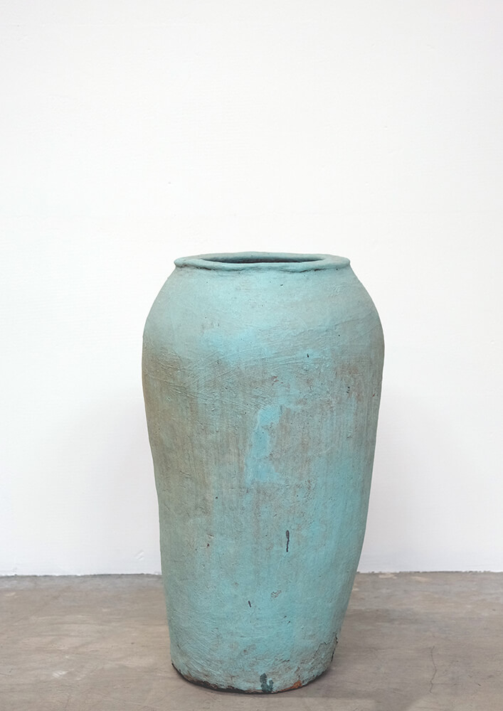 This stunningly old turquoise blue pot is ideal to use for large plants indoors or in the orangery. Pop in an olive or citrus tree and let your mind wander to warmer climes. The pot is handmade and used for storing grain and for drinking water. The pot is not 100% waterproof or frost-proof. We therefore recommend that you either place a bowl in the bottom of the pot or add a plastic insert. With this pot you get something beautiful and used with a long history, and you can add your own story to its journey through time.