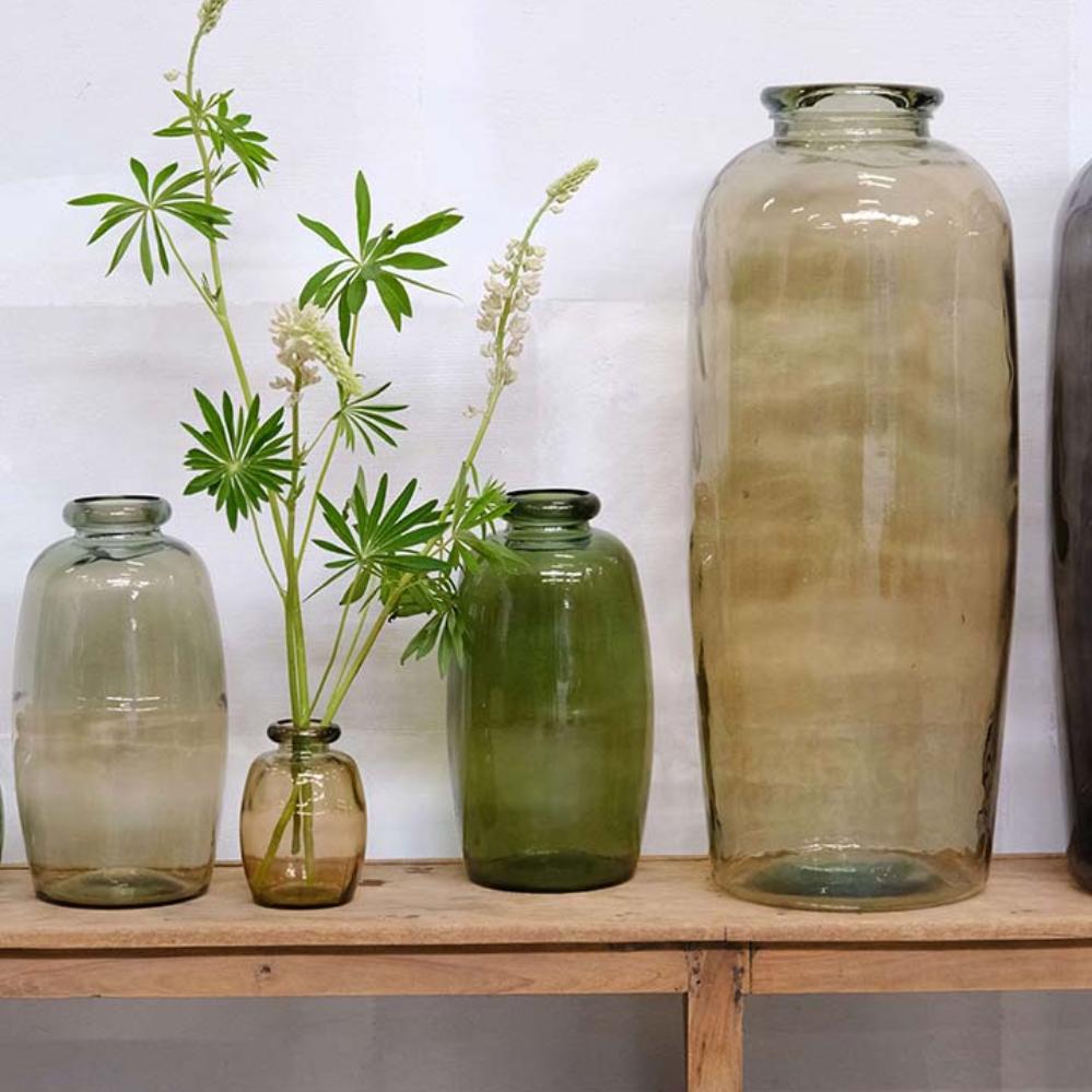 Beautiful smoke colored glass vase in recycled glass for everything from fragrant favorite flowers to decorative branches. You can also easily use it simply as a decorative element in your home or with a raw candlestick. Or go all in and match it with several vases in the same shade of color, with dried or real flowers.