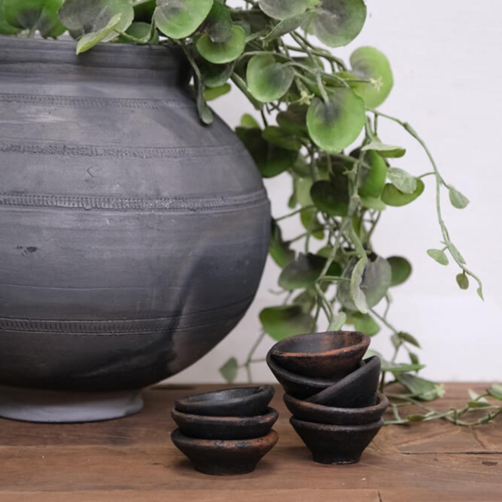 Small, rustic clay bowls full of character and authentic, handmade charm. These bowls, sold in crates of 48 pieces, are perfect as decorative elements in your interior or for storing jewelry, small stones, and the like. You can also place a tealight in them to create a cozy atmosphere in any room. No two bowls are alike, and each brings a touch of tradition and simplicity to your home or shop. The wooden crate measures H 10 cm x W 33 cm x D 17 cm.