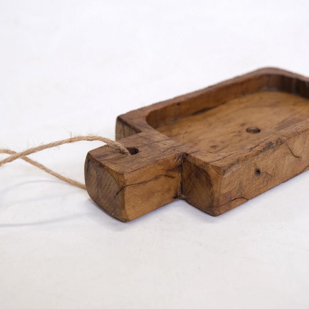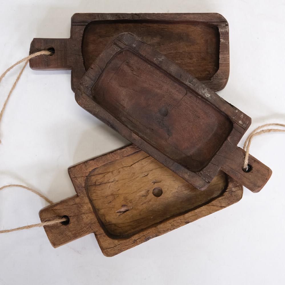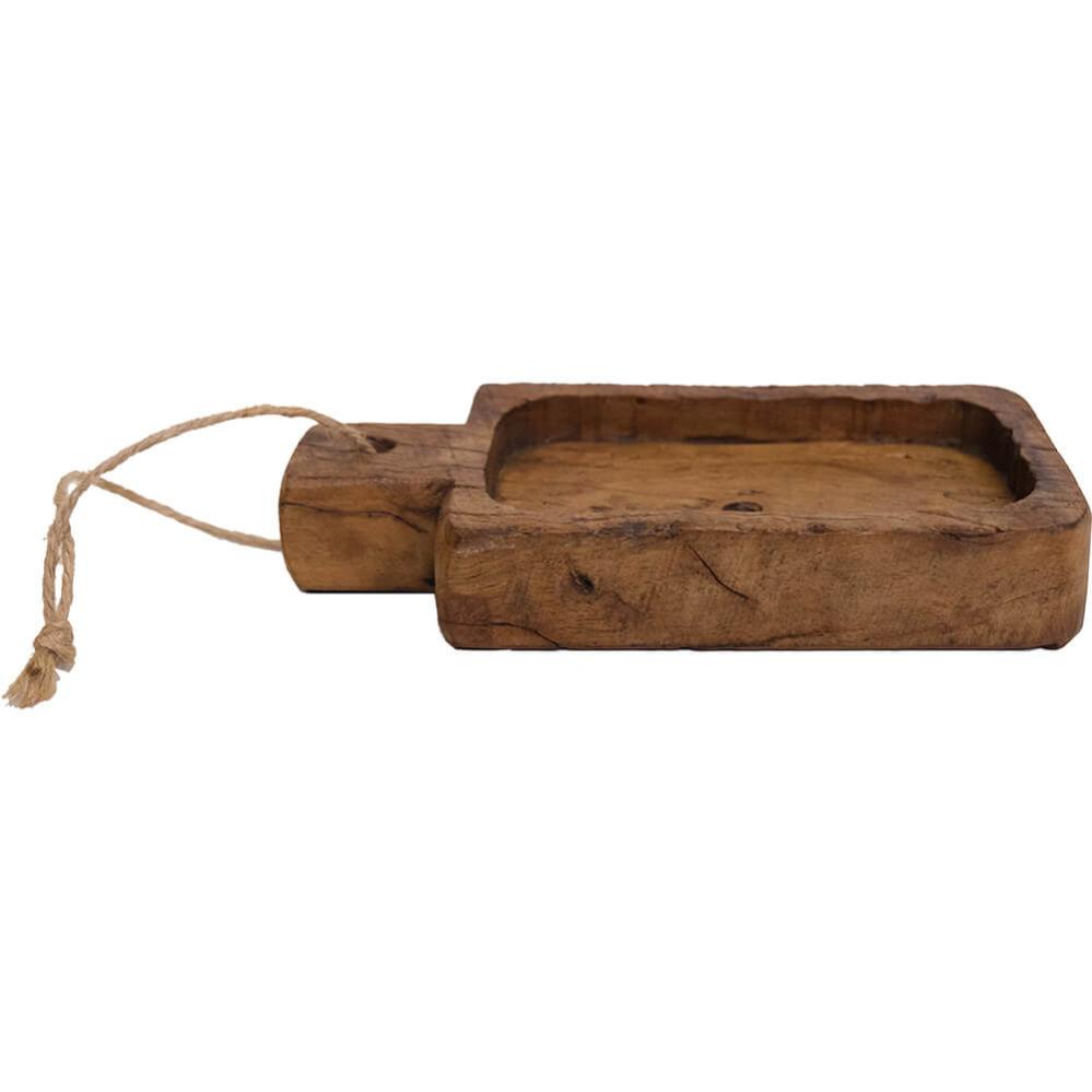 Small tray with handle made of reclaimed wood. The wooden tray is handmade and, combined with the small variations in the reclaimed wood, means that each has its own slight differences. The wooden trays have a string in the handle and can therefore be hung on the wall along with your cutting boards. Use these small, rustic trays to add an extra rustic touch to your decor.