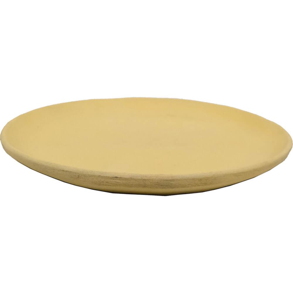 With a diameter of 30 cm, this rustic clay dish offers a generous surface for your tealights or decorations. The yellow color creates warmth, making the dish a great complement for those who wish to create a welcoming atmosphere.