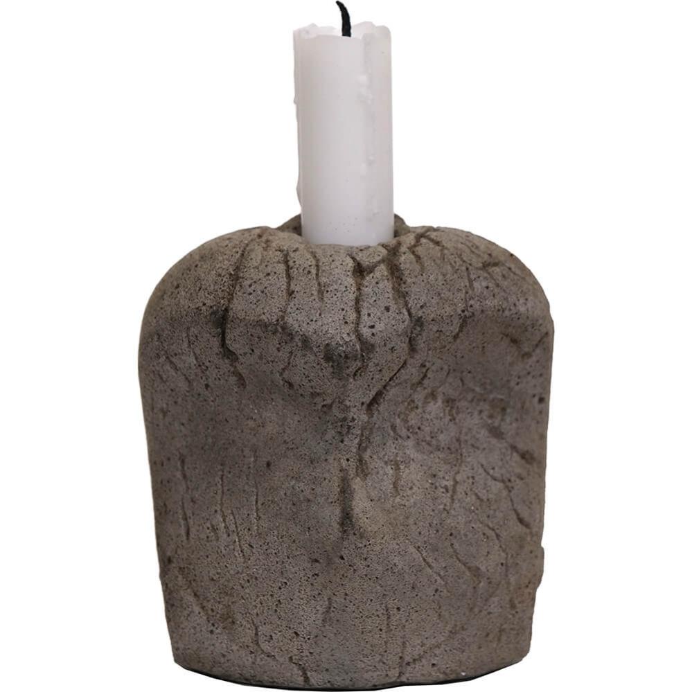 Beautiful candlestick for taper candles. The candlestick, which represents a head, is made of a mixture of clay and cement, that gives a rustic and stylish look. Create coziness with this fine and raw candlestick, either alone or in a cluster of several on a dish or tray. Search for Theo in the search field to find matching sculptures.