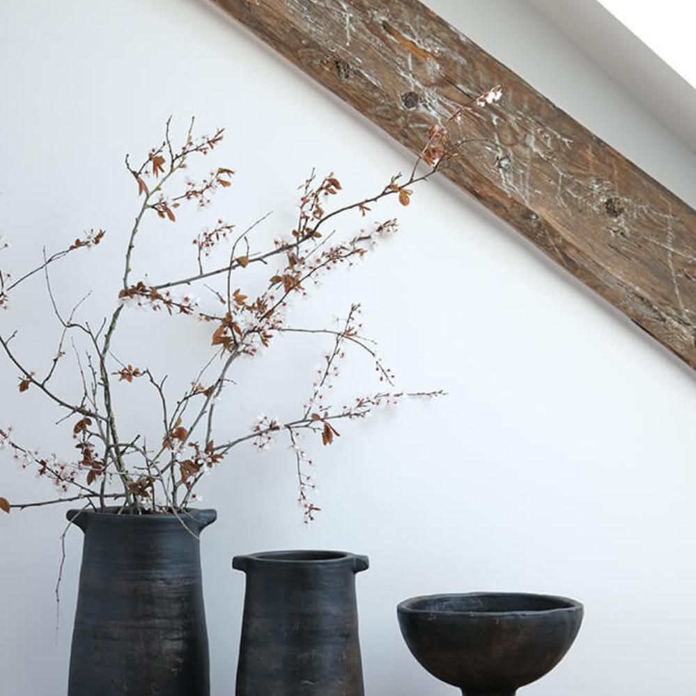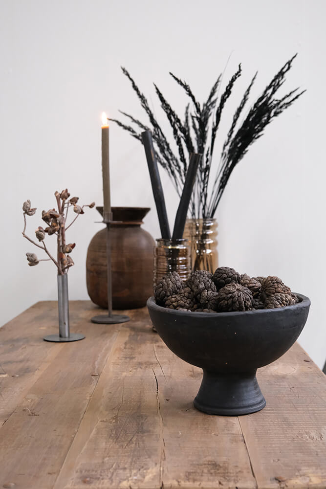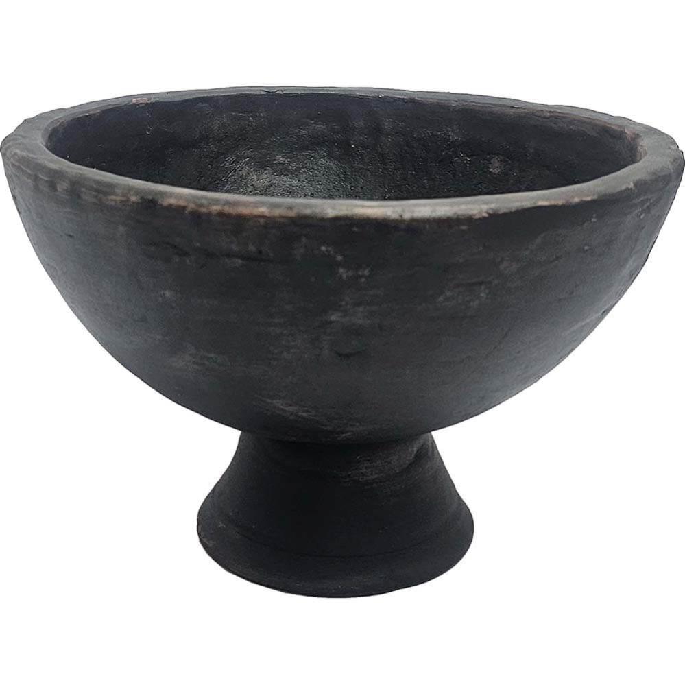 This handcrafted clay bowl exudes simplicity and raw charm. With its dark surface and sturdy form, the bowl is both decorative and functional. The tall foot gives the clay bowl a classic and almost sculptural expression, making it a focal point in your decor. Use the clay bowl as a decorative centerpiece on the dining table or in the windowsill – it's ideal for everything from small items to a flower arrangement and can easily stand alone as a statement piece. Wherever you place it, the bowl's rustic and handmade look will add an authentic and earthy atmosphere to the room. The clay bowl is not waterproof, so for plants please use a plastic insert.