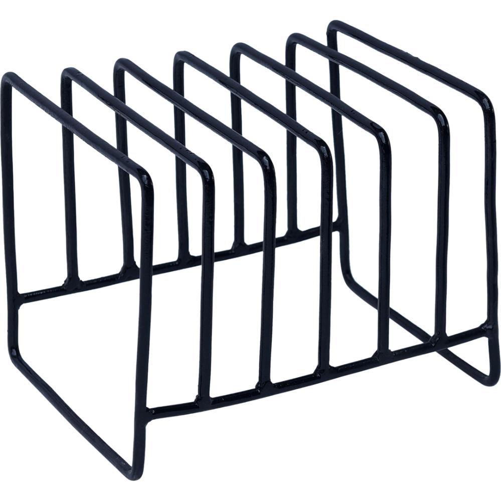 Practical and stylish plate holder in black iron. With its simple lines, it's perfect for keeping your plates or cutting boards organized in the kitchen. The holder fits seamlessly into both rustic and modern kitchens, ensuring your kitchen tools are always within reach. Robust and durable – a must-have for any cooking enthusiast or organization fanatic.