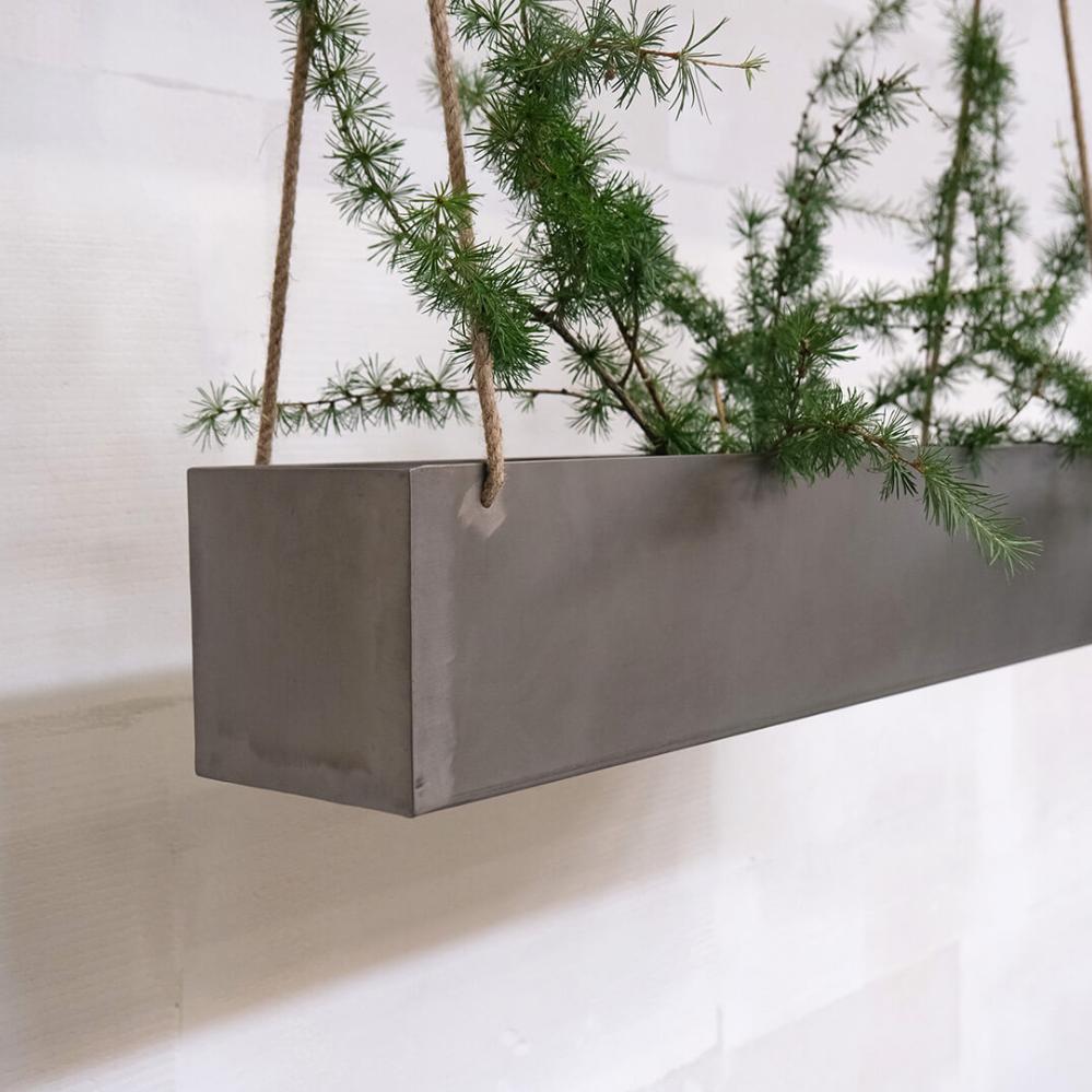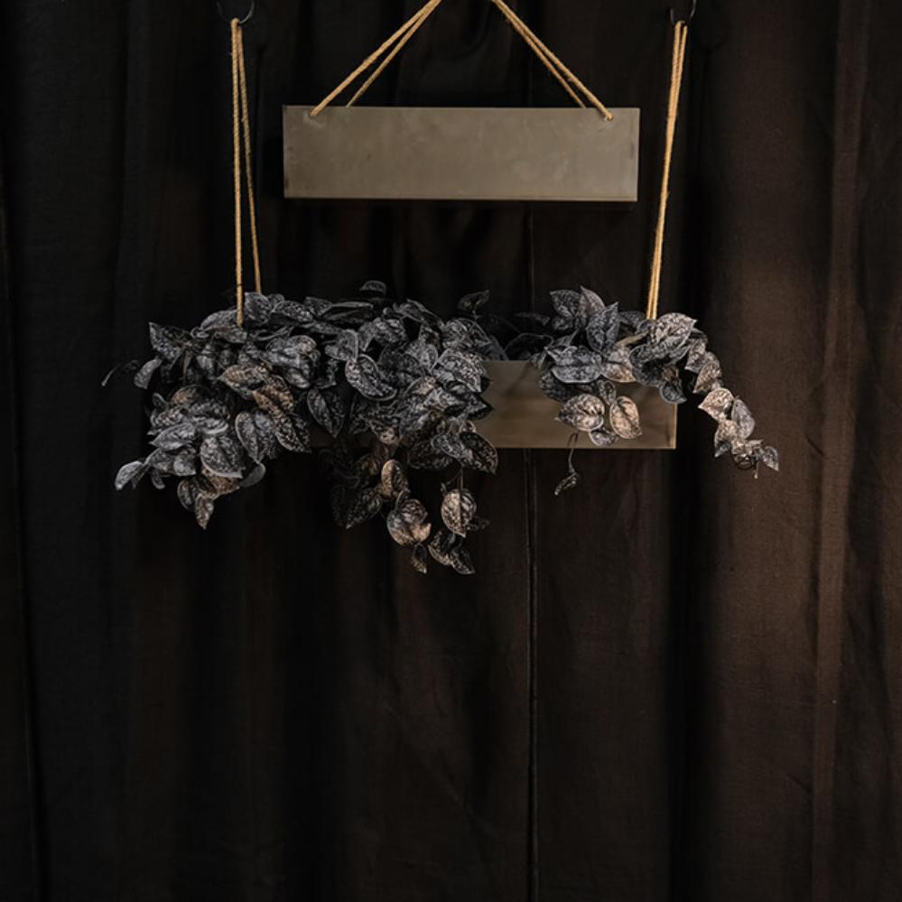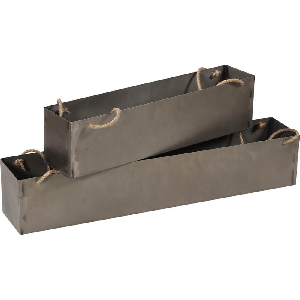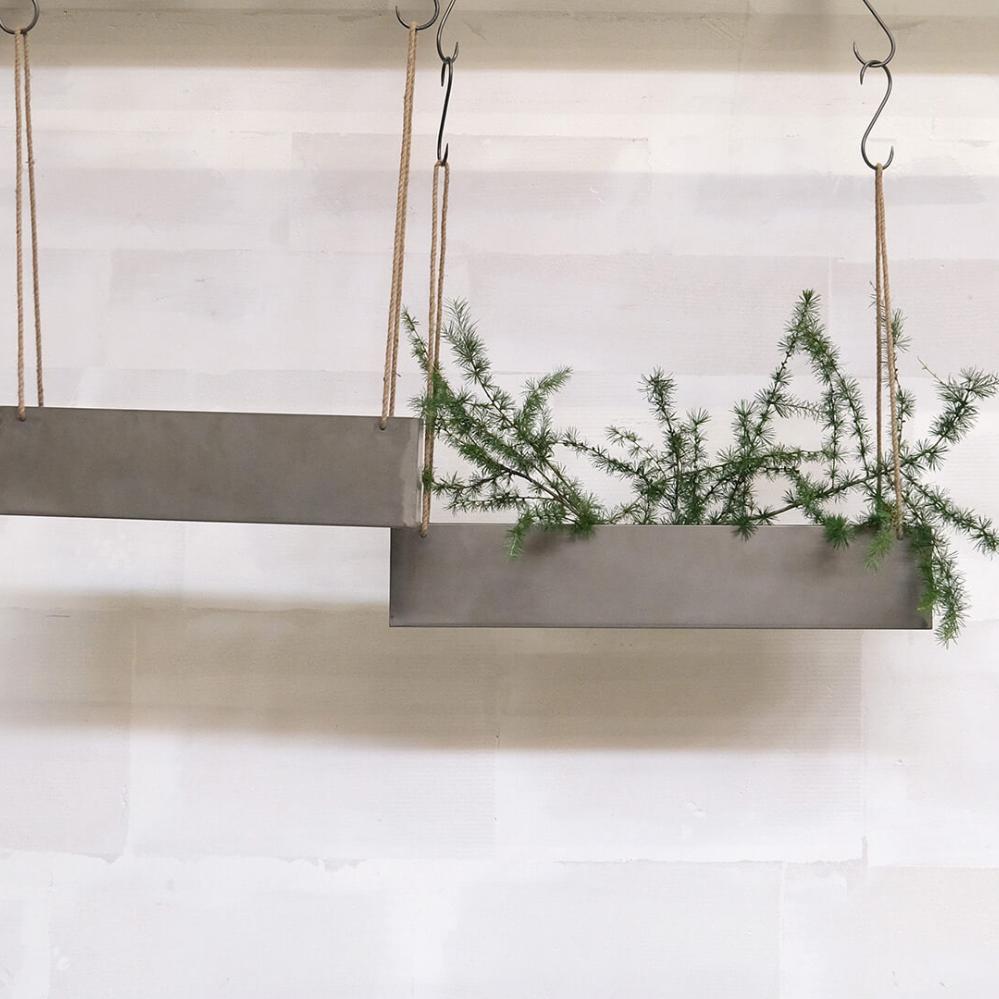 This is a set of plant boxes consisting of two rectangular boxes in a raw design. The plant boxes are made of sheet iron and mounted with ropes on both sides of each plant box so that they can be hung up. Create a natural atmosphere with plants hanging down from the ceiling or from the wall. You can also use the boxes as a unique and creative champagne cooler hanging down over the table in your cafe or restaurant. It is important that you use some kind of insert in the plant boxes, as they are not waterproof. Large: H: 15cm x W: 80cm x D: 15cm Small: H: 15cm x W: 60cm x D: 12cm