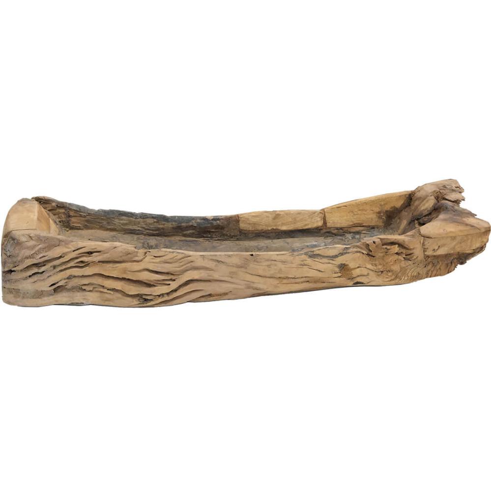 Rustic and elongated wooden tray. The wooden tray is very decorative and gives you endless styling possibilities. Is perfect for flower decorations, as well as on the dining table with many large candles or other knick-knacks. All dishes are completely unique and they vary in structure and look. THE SIZE CAN VARY A LOT! +/- 3 cm in height +/- 10 cm in width +/- 30 cm in length