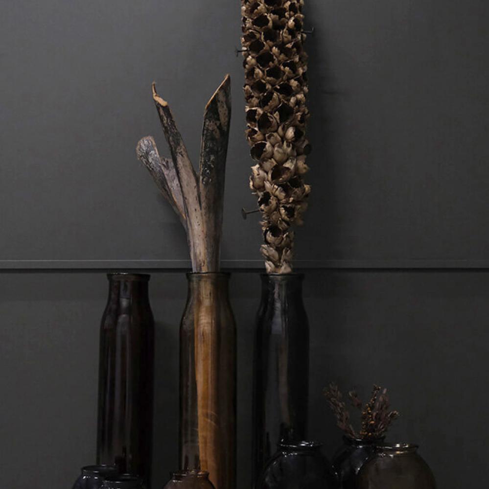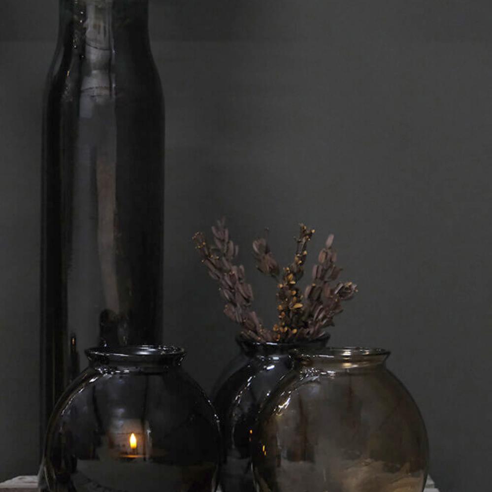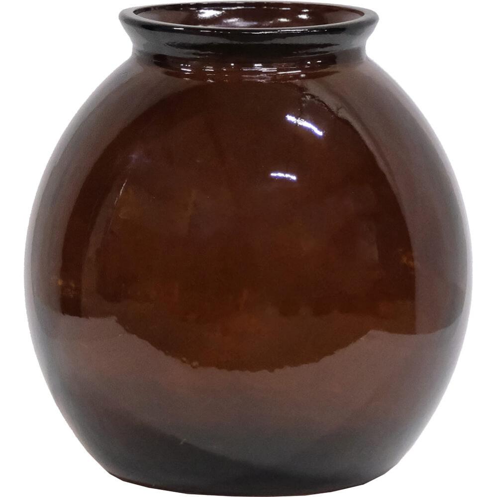 Add a touch of extra ambiance with this recycled glass vase. The vase's chubby shape and brown chocolate hue make it a charming little addition to your decor. The glass vase can also be used for small LED lights or flowers if you want to increase the cosiness.