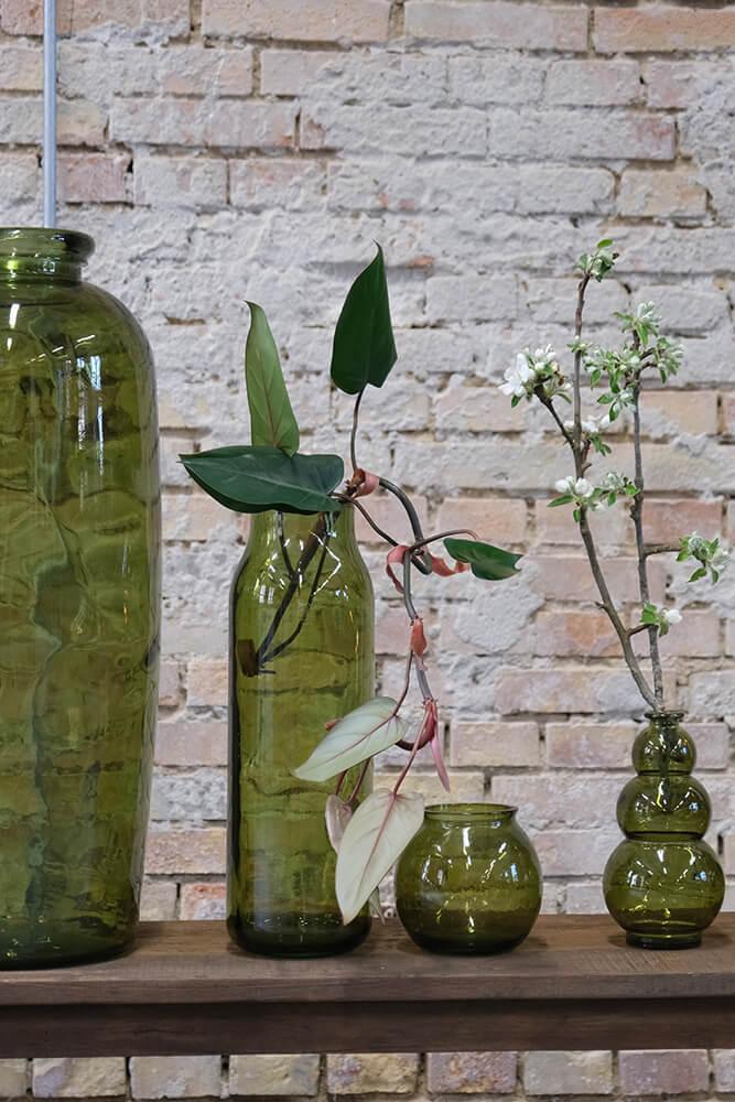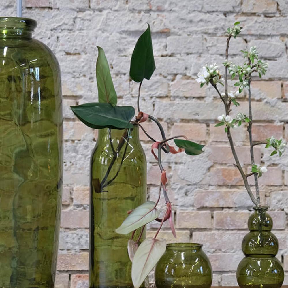 The Winslet vase in olive green recycled glass features a soft, rounded shape and a muted green tone that radiates natural calm and raw style. The colour evokes forest floors and fresh green shoots, and combined with the recycled glass, the vase gains a vibrant look with tiny imperfections and bubbles that add to its authenticity. Perfect alongside wood, iron, and dark textiles. Use it as a small green pause in your interior – in a windowsill, on a restaurant table, or as part of a larger arrangement with vases in different colours and heights.