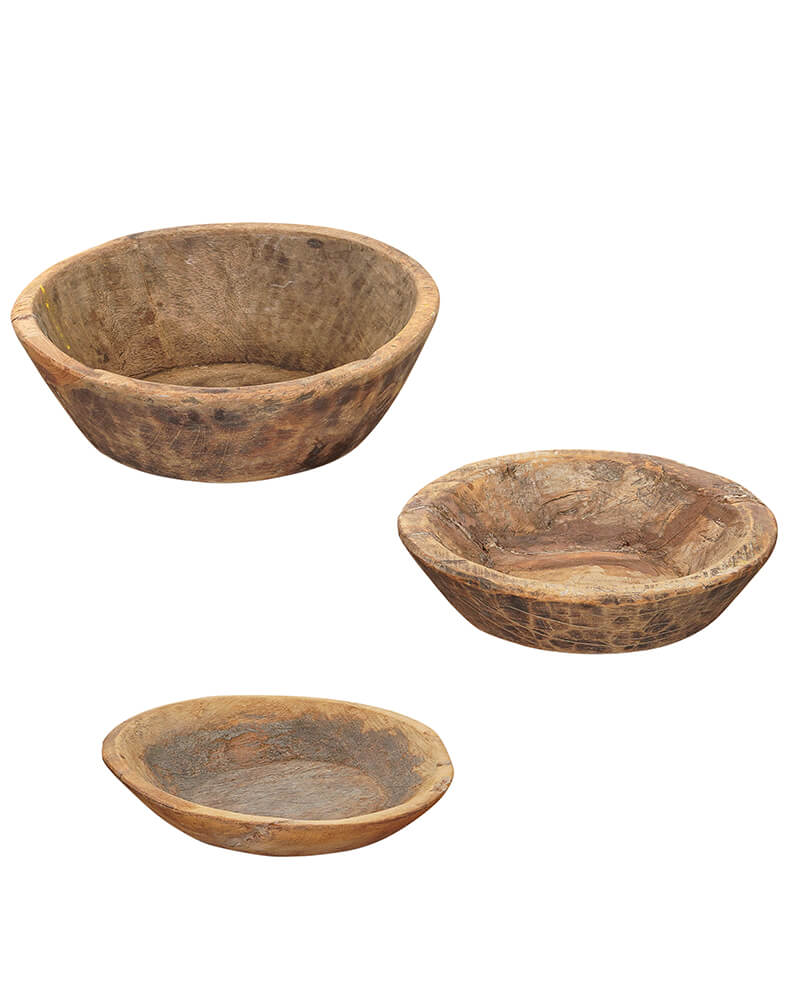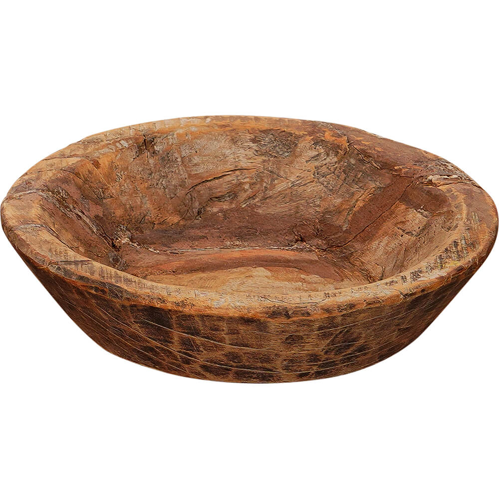 Old wooden bowl. Use the perfectly imperfect wooden bowl in your decor as decoration alone, as a fruit bowl or for vegetables. The wooden bowl will also be perfect as a dish for a beautiful Christmas decoration or for a beautiful still life all year round. None of the bowls are the same as they were originally made by hand, and then used in Indian homes. The wooden bowls can therefore also vary in size, depth and design, just as there can be beautiful traces of wear such as small cracks. The size varies from 20-25 cm in diameter.