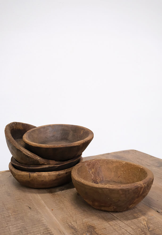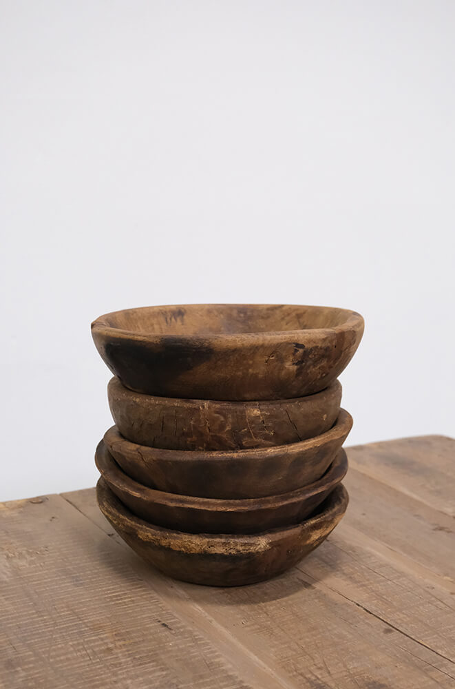 These old wooden bowls are full of charm and personality. Every single one of them. They vary in size and appearance, and that’s exactly what makes them so wonderful. Some have small cracks, others show signs of wear or darker tones in the wood, but they all share a rich history and a truly unique handcrafted character. Use them as fruit bowls, for serving snacks, as decoration on the dining table, or as a beautiful base for candles and dried flowers. They work both individually and stacked, creating a warm and rustic look. Each bowl is different, so you’re not just getting a practical item; you’re getting a small piece of craftsmanship that brings natural patina and warmth into your interior. A perfect choice for anyone who loves objects with charm and authenticity.
