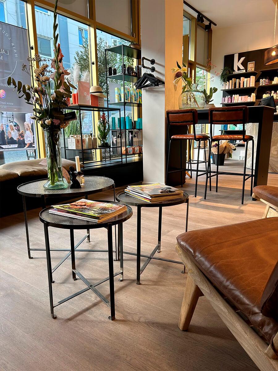 The cognac-coloured lounge chairs are the pieces of furniture that receive the most comments when customers are sitting in the waiting area at the LauritsenMaul beauty salon. But every detail has been carefully considered in this lovely hair salon in Bredgade, Herning. Join us for a visit but be careful… you might catch the interior design bug.