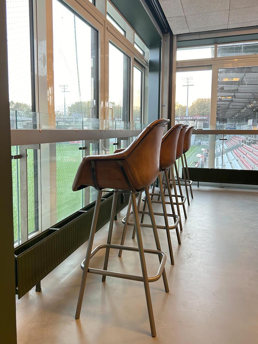 “The meeting room with the stadium panorama gets the most reactions when clients or guests visit our new office,” Rune explains. “And it’s not every day you get to sit in a comfy bar stool, enjoy a beer and watch live football.”