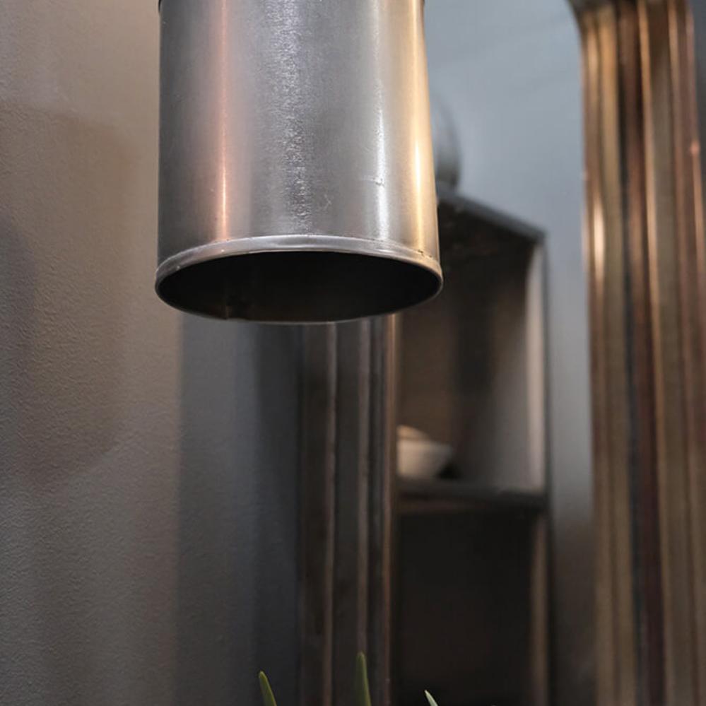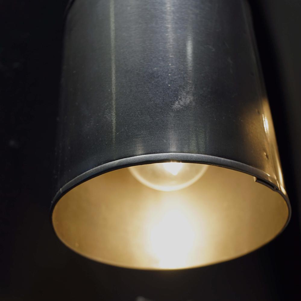 This ceiling lamp is crafted from metal with a shiny brushed-like surface that adds a modern and raw touch. The simple cylindrical shape creates a minimalist expression, making it suitable for both private homes, cafés, and restaurants. The lamp provides a focused downward light, making it ideal to hang above the dining table, the shop counter, or in a cozy corner, where it contributes to both functionality and atmosphere. The black fabric cord adds a subtle contrast and highlights the lamp’s sleek design.
