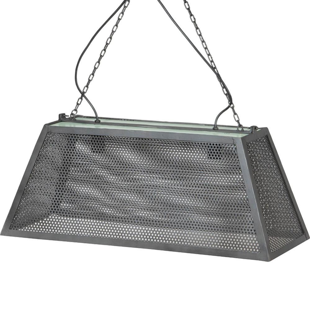 Raw pendant lamp made of perforated iron. The lamp exudes an industrial coolness, and its textured surface creates an exciting interplay of light and shadow. The large size of the lampshade provides ample illumination and can be used as a practical lighting option for large areas such as the living room, dining room, or office.