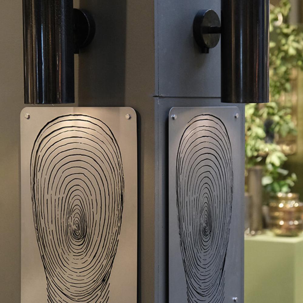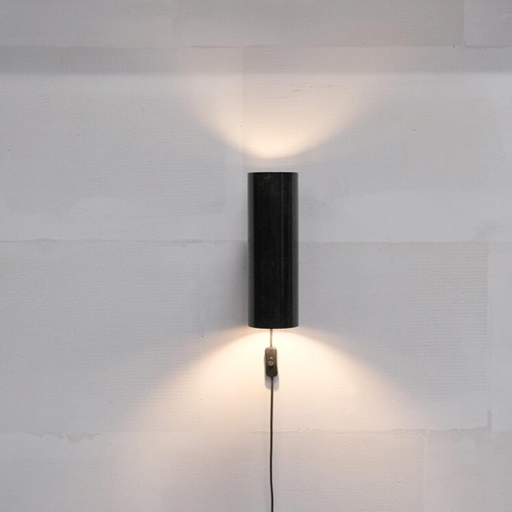 Simple cylindrical iron wall lamp with dark blue marbling and with 2 sockets. The Jonah wall lamp illuminates the room with a beautiful two-part glow from its 2 light sources, - top and bottom. The light is exclusively indirect and will thus never dazzle. With its simple design, the wall lamp will easily fit into any decor and provide a really cozy atmosphere.