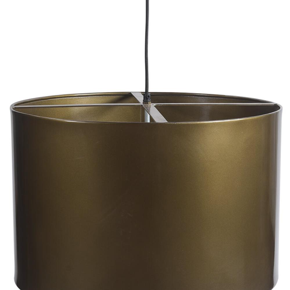 This large Jonah ceiling lamp in iron is painted in a warm antique brass, giving it both a modern and classic expression. The wide cylindrical shape ensures that the lamp works as a striking element in the interior while spreading a pleasant light. Its size makes it ideal as a centerpiece above the dining table, in the living room, or in a larger space where it adds both atmosphere and character. The simple form combined with the antique brass surface creates a beautiful balance between industrial design and timeless style. The black fabric cord completes the overall look, making the lamp appear both sleek and robust at the same time.