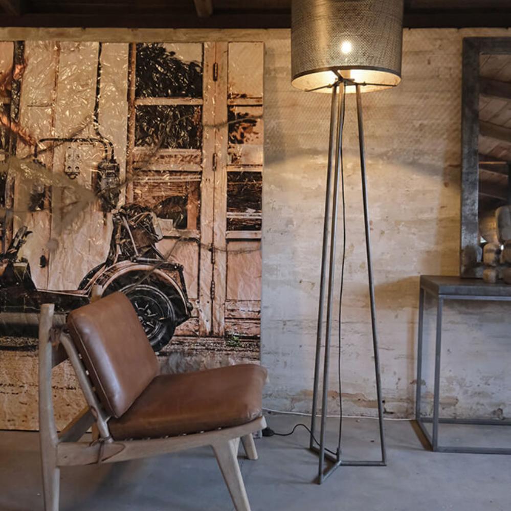 Exclusive floor lamp in a masculine design. Wherever the floor lamp is placed it will give the room a powerful personality. The floor lamp is made of iron and with the perforated lamp shade the lamp appears with a masculine industrial expression. Can be easily combined with other different furniture, but the lamp can also easily stand alone. Super cool with our LED bulbs.