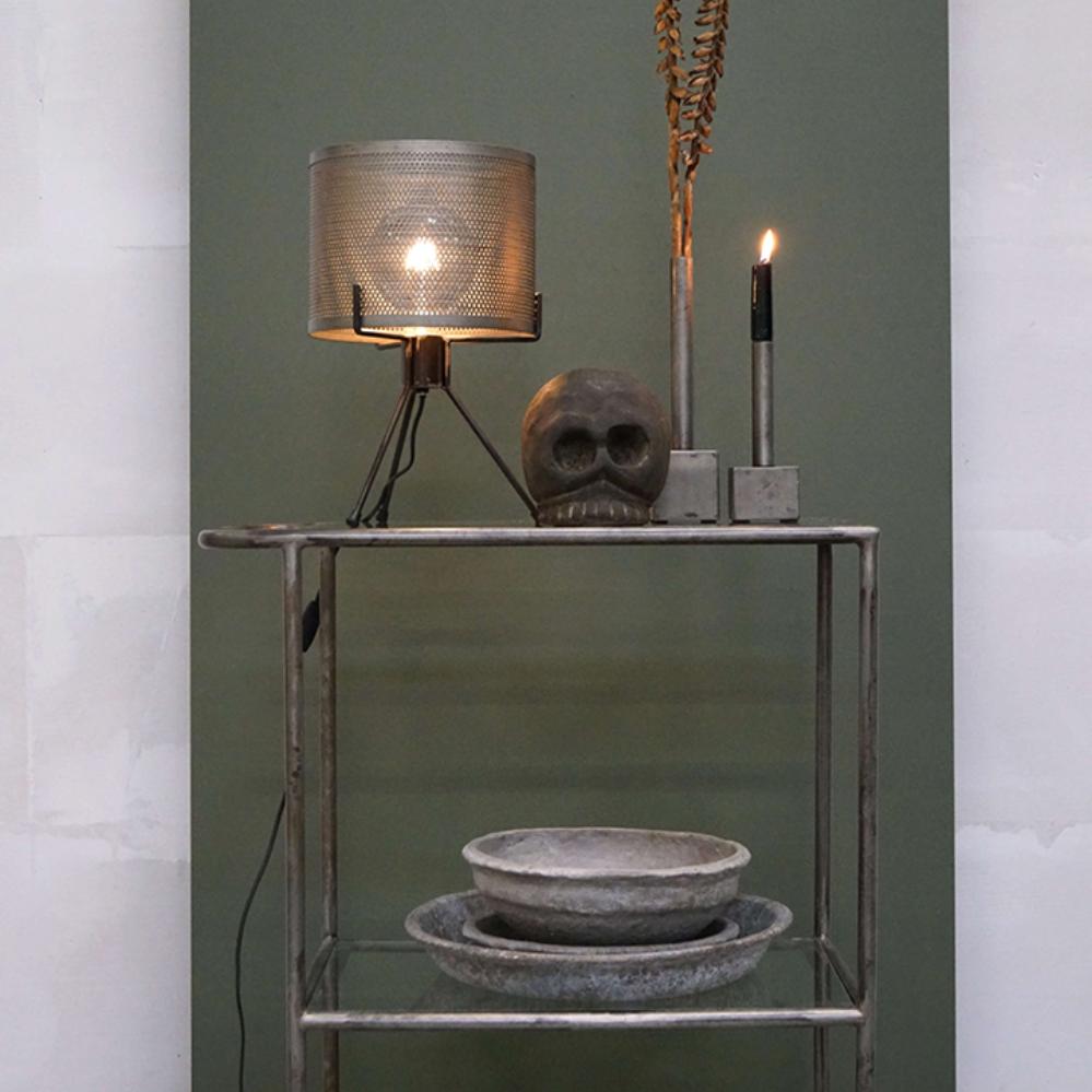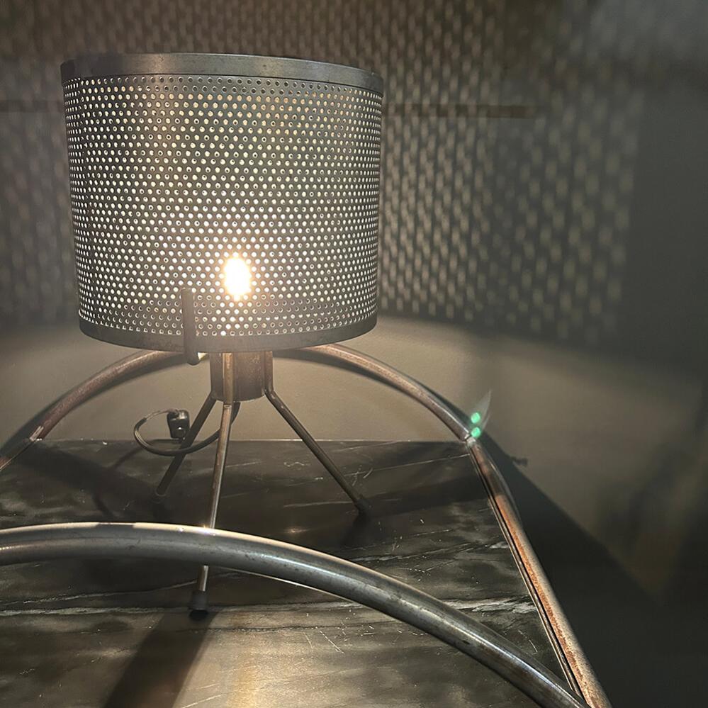 Table lamp with an edge. Whereever it is placed, the lamp adds a stylish and personal decoration. The table lamp is made of robust iron and with the perforated lamp shade the table lamp has a raw industrial appearance. Super cool with our LED bulbs.