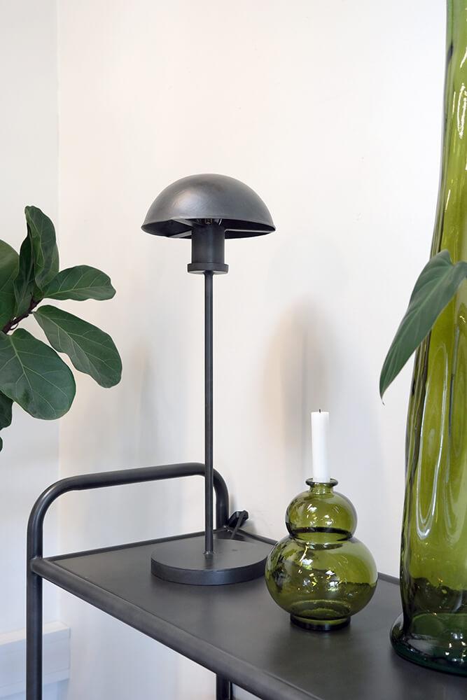 This iron table lamp combines simplicity with raw character. Its sleek base and small, semi-spherical shade lend the lamp a minimalist look with a touch of industrial charm. The dark, polished finish of the iron adds a robust character that fits seamlessly into both modern and rustic interiors. Ideal as a reading lamp or for creating cozy lighting on a bedside table, desk, or in a cozy corner. A functional and rustic addition to any room!