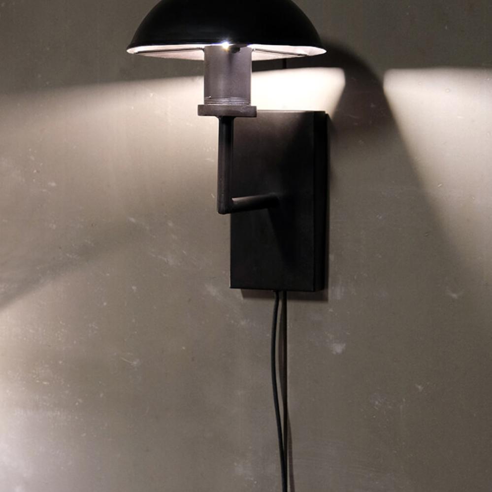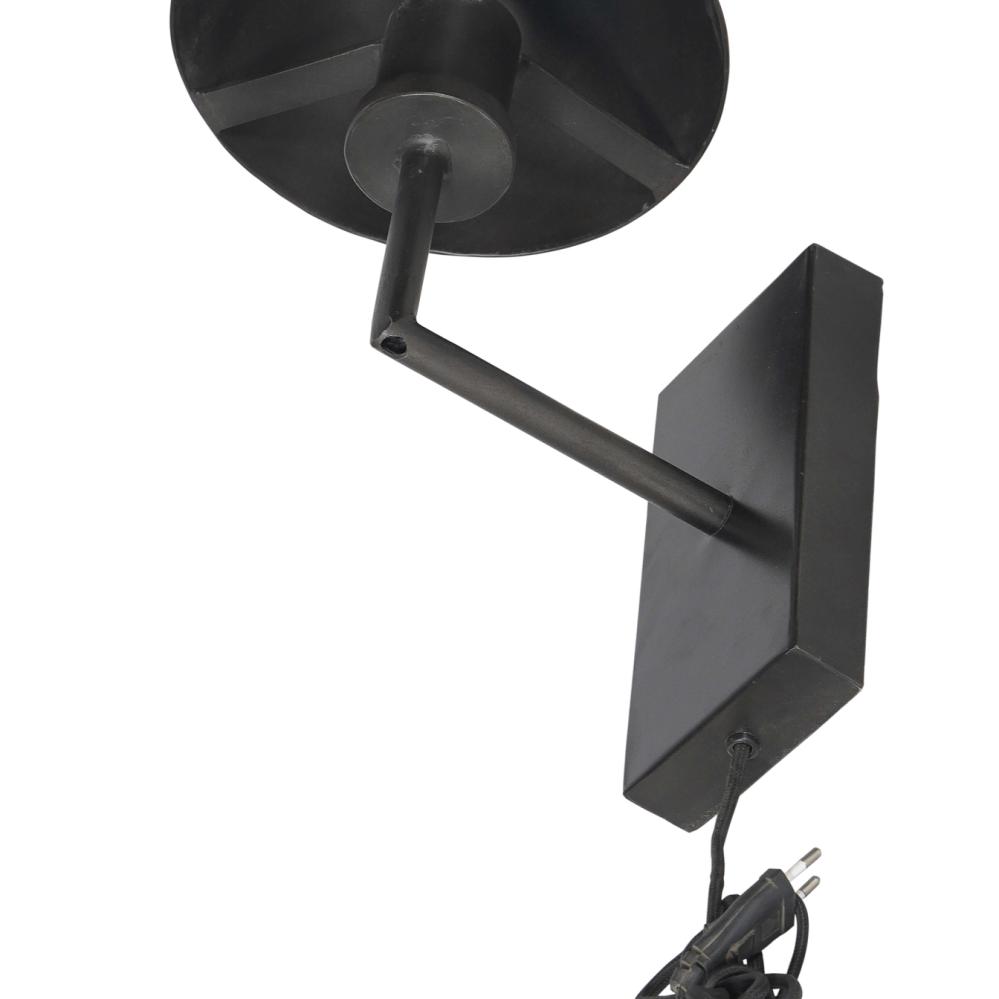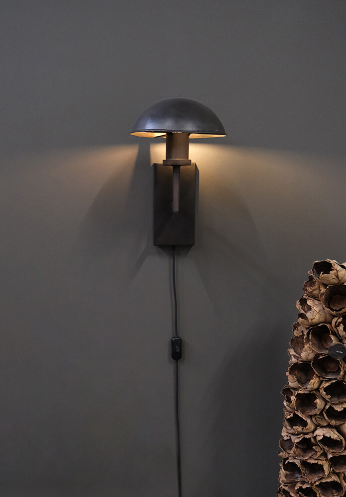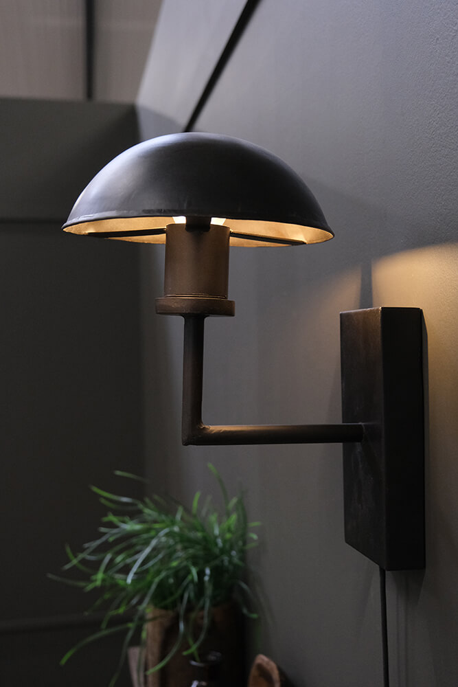 This wall lamp in dark iron exudes simplicity and a robust style. With its compact construction and elegantly curved shade, it is perfect for creating cosy lighting in any room. The lamp features a minimalist, industrial design that complements modern and raw interiors. It is ideal as a reading light or mood lighting in the bedroom, living room, or hallway. For a cohesive look, you can pair the wall lamp with the matching table lamps from the same series, available in two sizes (M08226 and M08390).