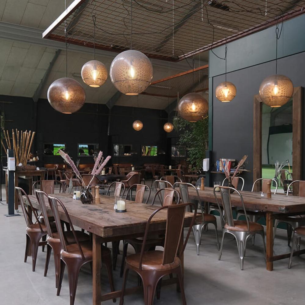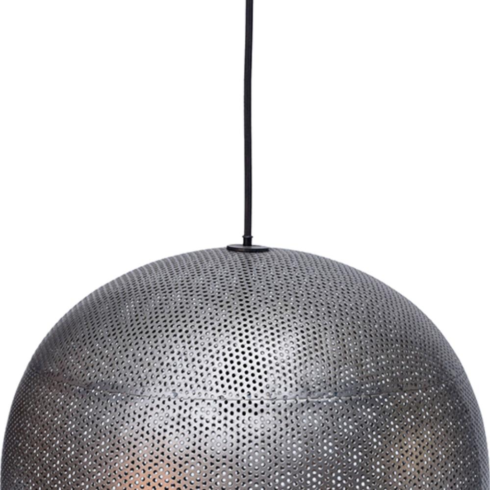 The medium-sized Moonlight pendant is the epitome of balance, neither too big nor too small, but exactly the lamp that fits into most rooms. With its perforated iron shade, it creates a raw, industrial look, while the perforated pattern casts a soft, atmospheric light that makes any space inviting. Above the dining table, the lamp truly comes into its own. The direct lighting makes it easy to gather your guests, while the patterned light dances across walls and ceilings, giving the room a unique expression. It also works beautifully in a restaurant, where it provides both functional lighting and a pleasant atmosphere. For extra effect, you can combine the medium Moonlight with the other sizes. This way, you can create a dynamic and vibrant lighting landscape that adds character and depth to the room. Fits bulbs up to 9.5 cm in diameter. Without canopy.