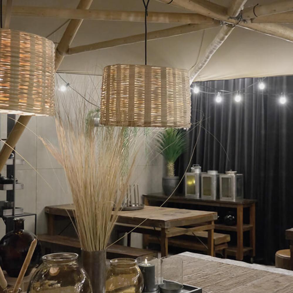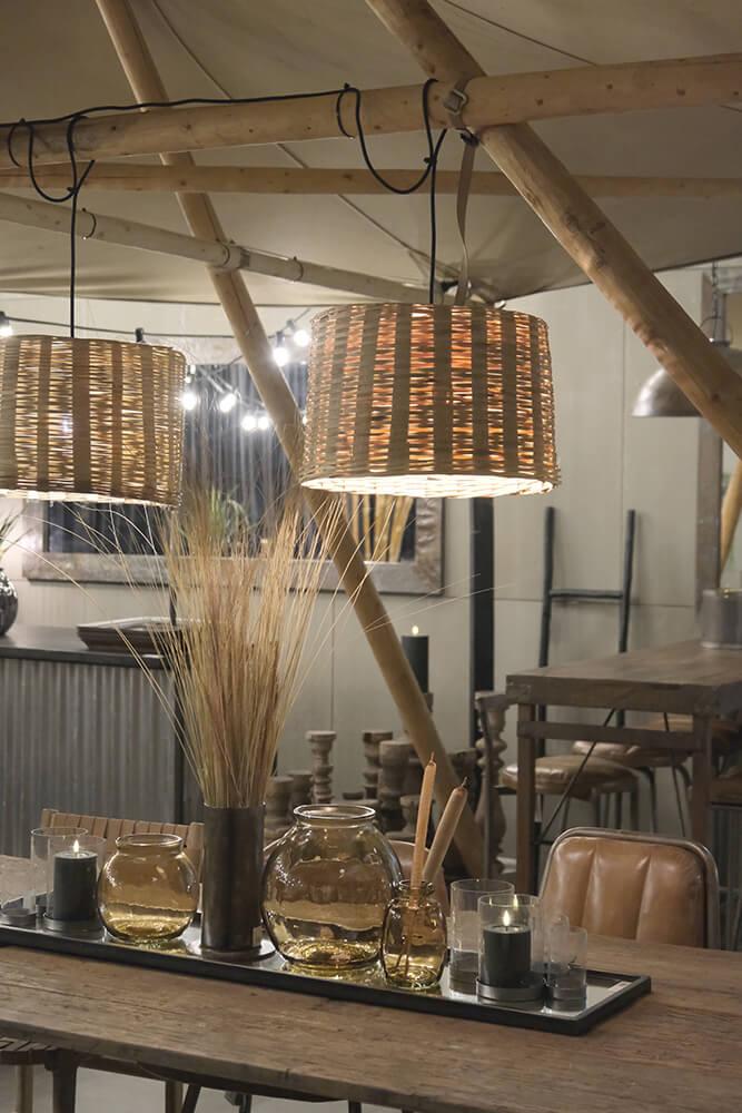 Natural colored and simple bamboo pendant. The bamboo lamp is very decorative and at the same time gives the room a very soft and cozy light. If you have the space for it, it will be super nice with two of these bamboo pendants side by side for example over a long dining table or a long counter.