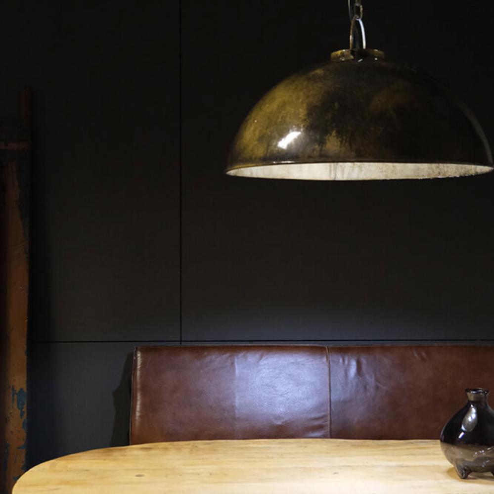 This Thormann ceiling lamp combines raw craftsmanship with a unique play of colors in the metal surface. The striking metal marbling makes each lamp individual and adds a dynamic touch that brings warmth and character to any space. The wide dome shape provides excellent light, making it ideal above a dining table, a workspace, or in a café interior. A lamp that works both as lighting and as a decorative centerpiece, created for those who want something truly special for their home or shop.