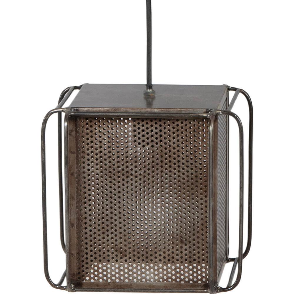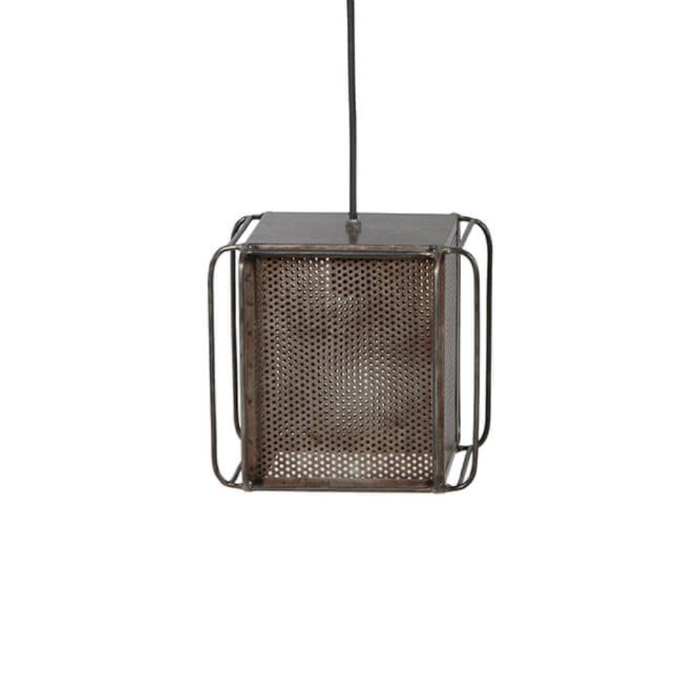 If raw industrial design is your thing, this ceiling lamp is the perfect match. Made of metal in a cubic shape with a perforated shade, it provides both a striking light effect and plenty of character to the room. The simple metal arches surrounding the lamp complete the look and give it a cool, factory-inspired vibe. Perfect above a café table, in a bar, or as a bold statement in your home – whether on its own or grouped together for extra impact. The light filters beautifully through the perforations, creating an atmospheric play of shadows on walls and ceilings. A lamp that doesn’t try to be polished, but instead adds raw charm, edge, and personality to any space.