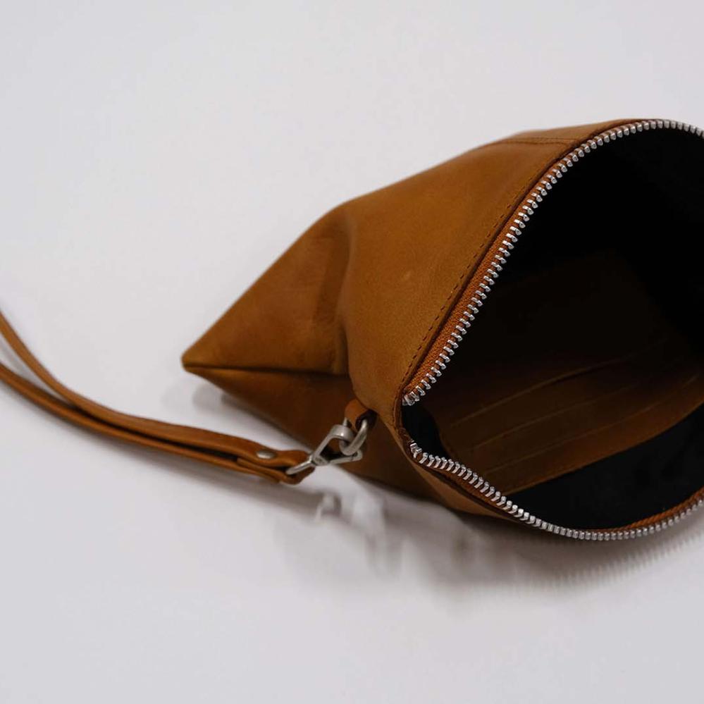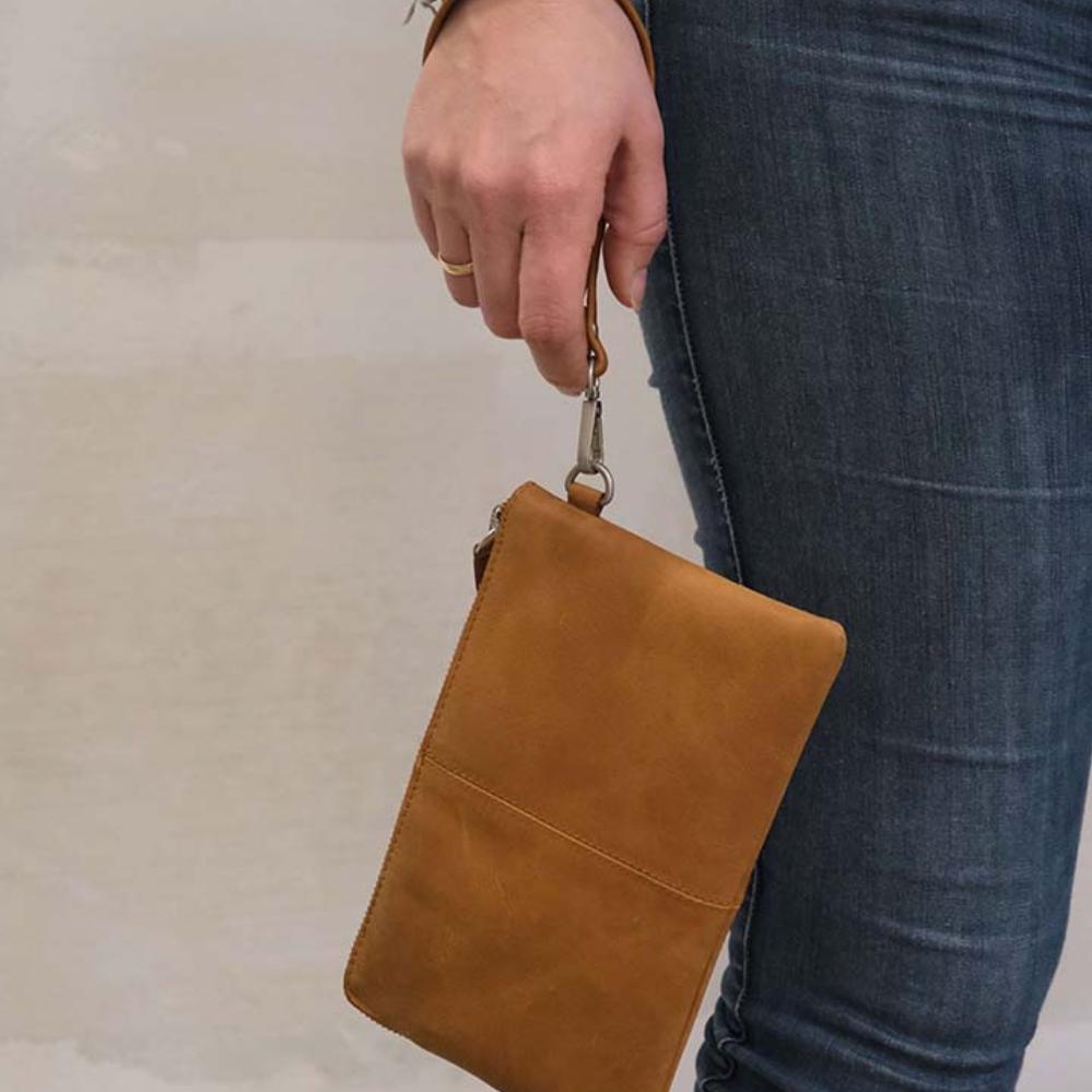 Nice, elegant clutch in brown leather with a removable wrist strap. Zip closure. Inside features a zip pocket and 3 card slots. Use this clutch in many ways - e.g. as a small bag, a purse or for your phone. Only your imagination sets the limit.