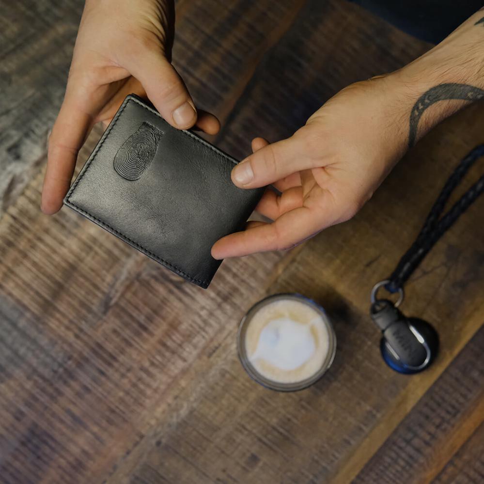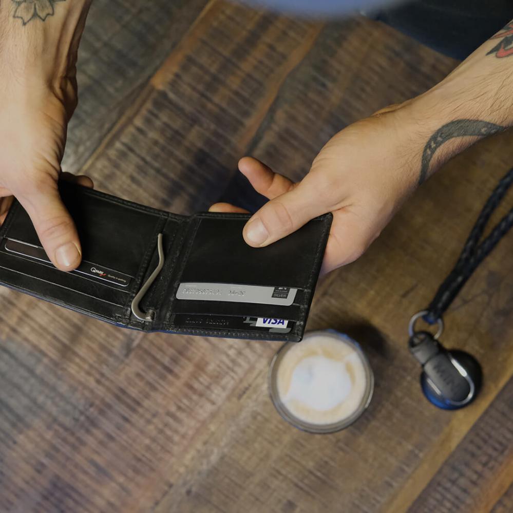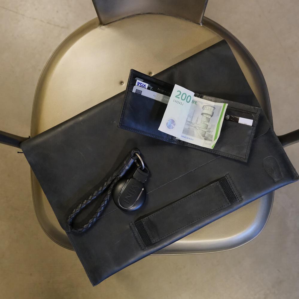 Black wallet in a simple and classic design. Holds banknotes, receipts and cards. The money clip is located in the center of the wallet, making it easy to get to your cash when you open the wallet. You find a pocket for receipts and 6 card slots in the wallet. The wallet is made of soft black leather and is very slim which means that it does not take up much space in the pocket.