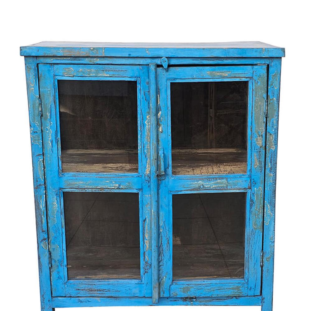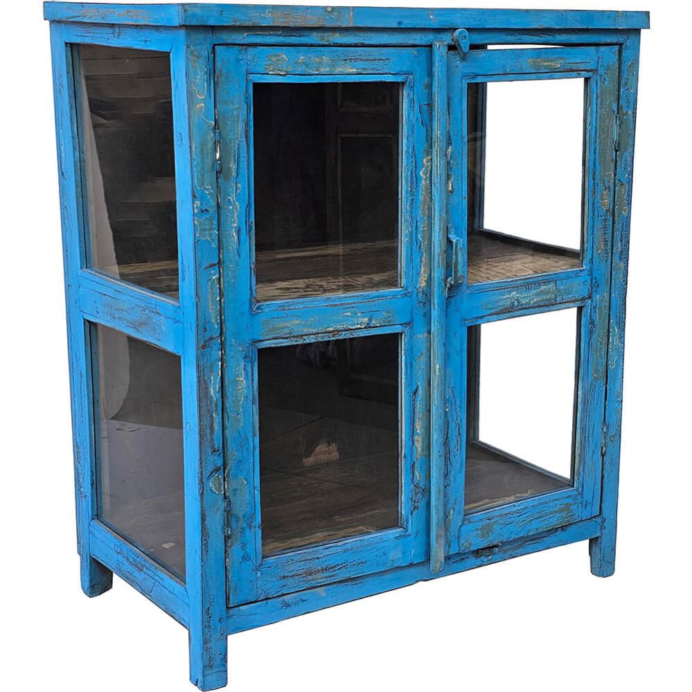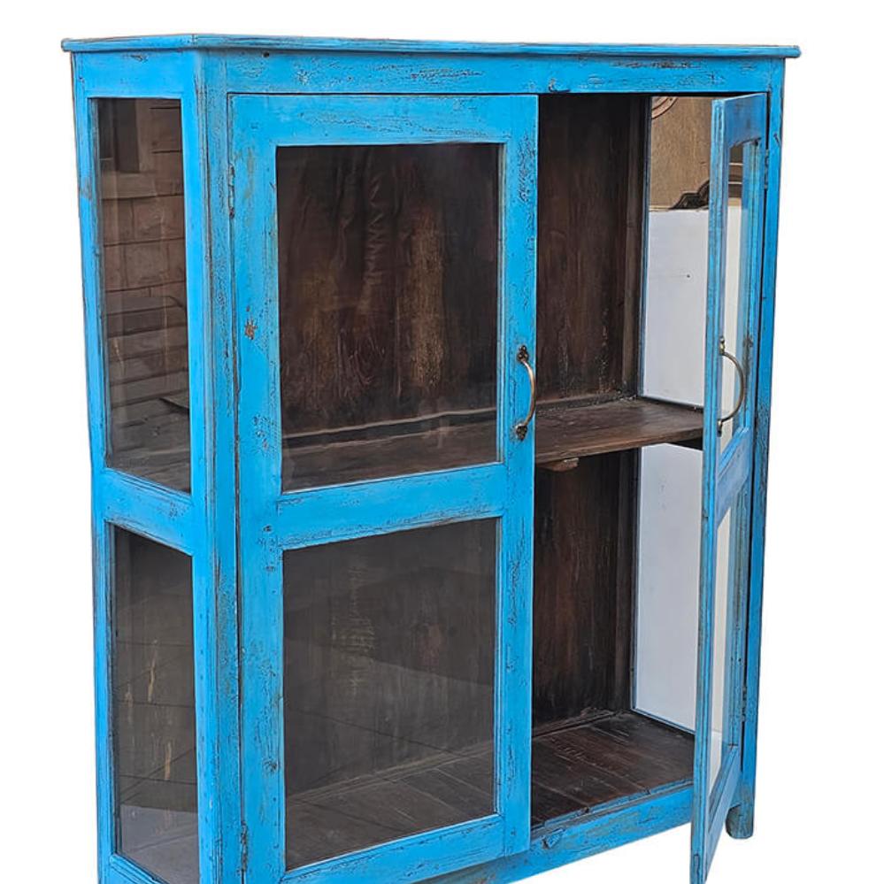 An old cabinet with a patinated layer of light blue paint can be the perfect counterpoint to an otherwise modern and minimalist space. Use it in an hallway or a living room to bring color and character into the room. With three glass sides, it's perfect for displaying porcelain or small still lifes.