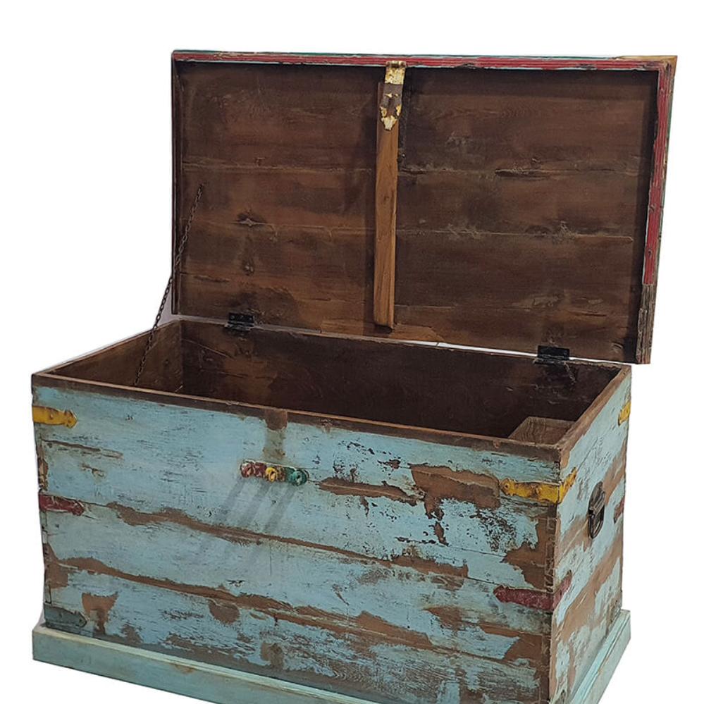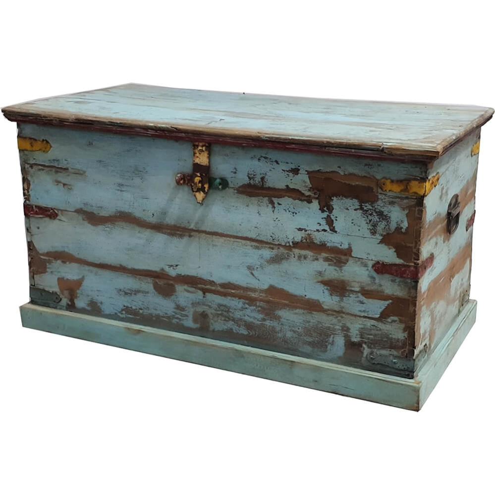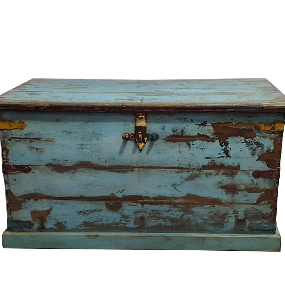 Blue wooden chest with patina