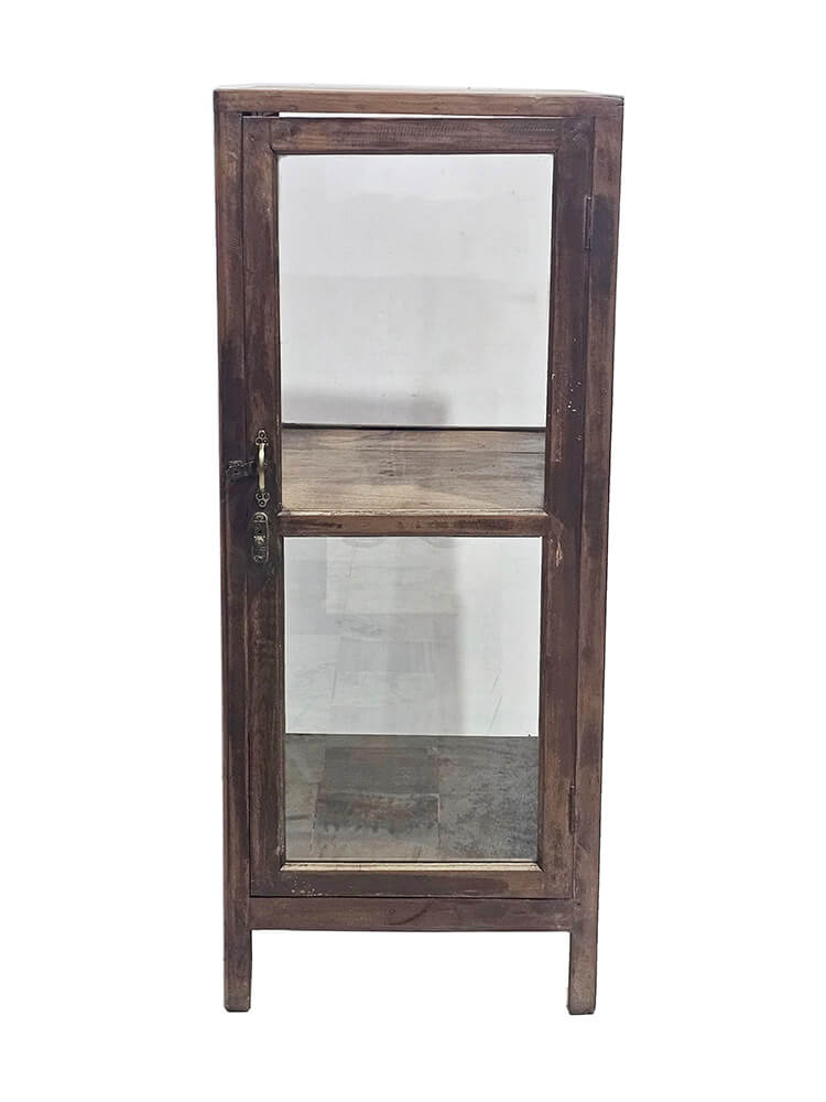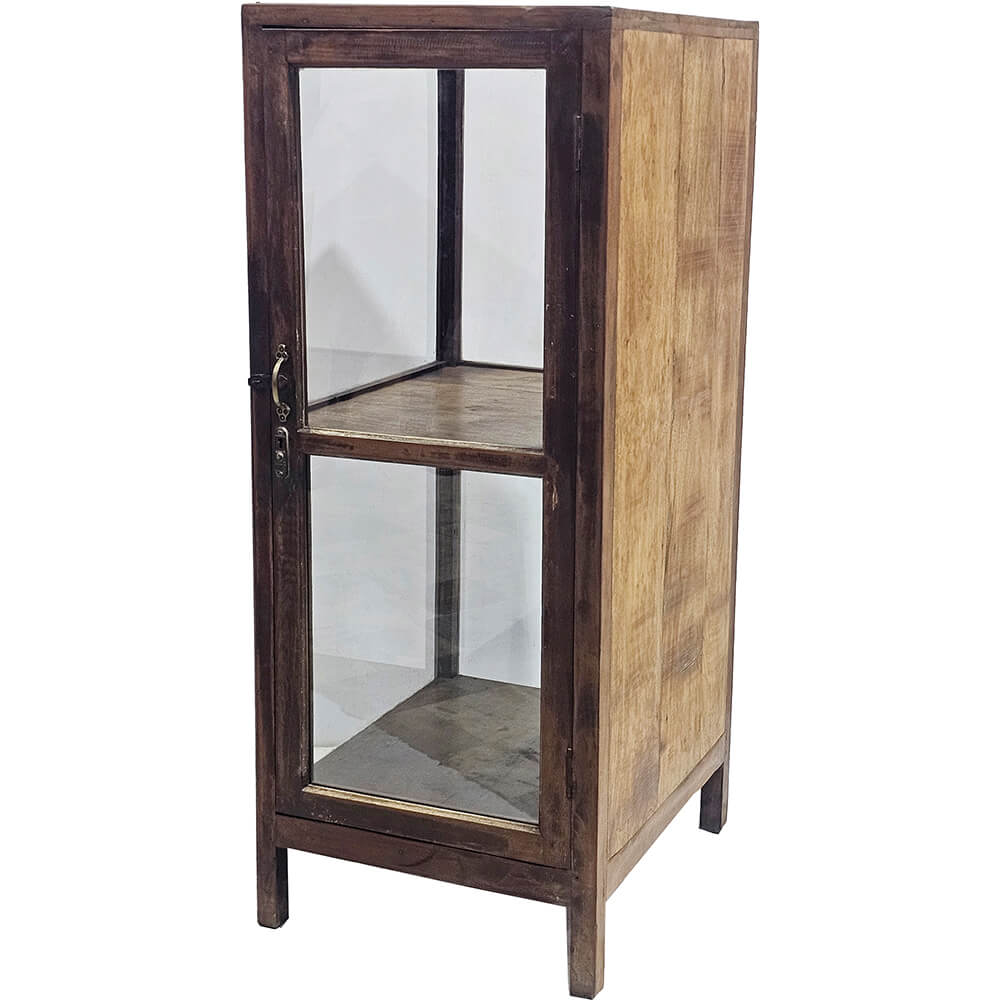 This narrow display cabinet is an elegant and calm addition to any interior. With glass on three sides, it offers a clear view of the contents from multiple angles, making it perfect for displaying glassware, ceramics, books, or small decorative finds. The warm tone of the wood combined with the simple design gives the cabinet a classic and timeless expression. Its slim shape makes it easy to place, even where space is limited. It works just as well in the living room as in the kitchen, office, hallway, or your shop. The clear glass surfaces create a light look, while the wooden frame adds edge and character. A beautiful and practical display cabinet that lets your items take centre stage and fits nicely into both modern and more rustic homes.