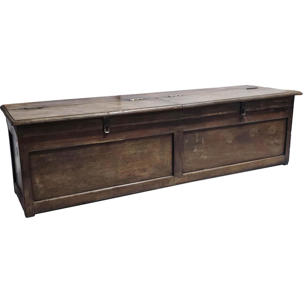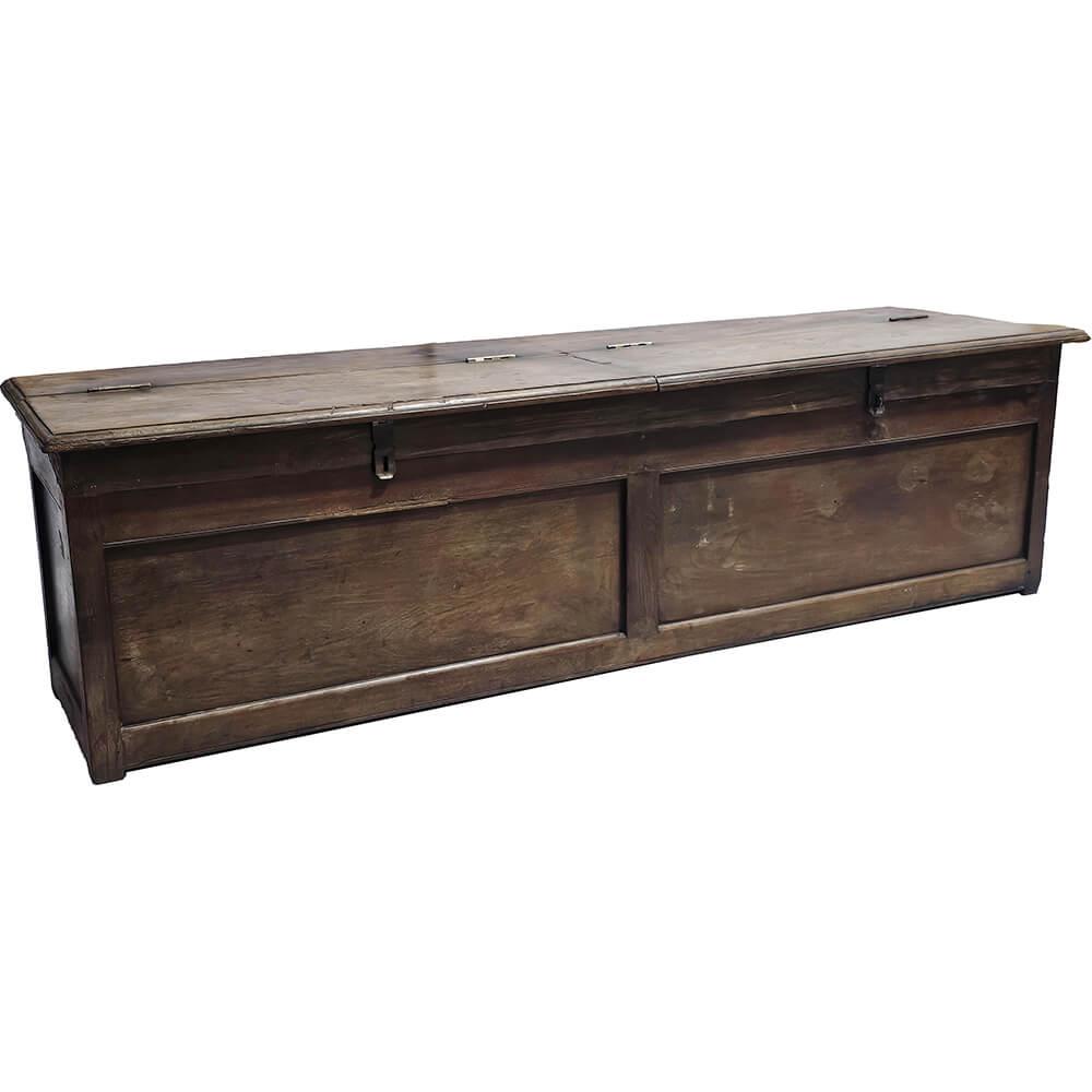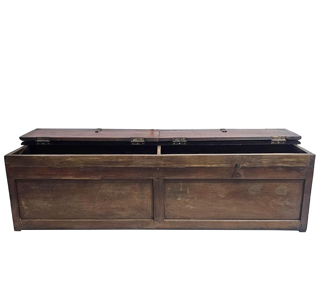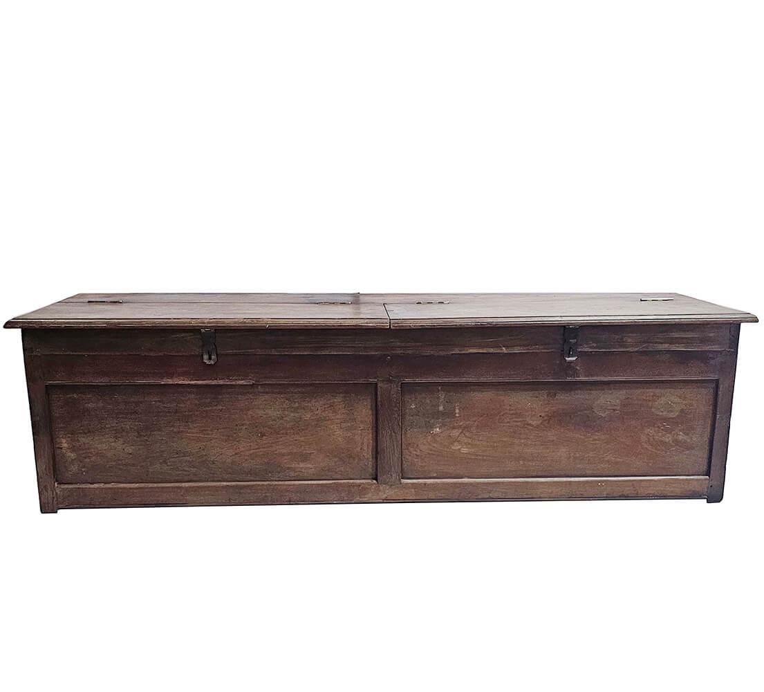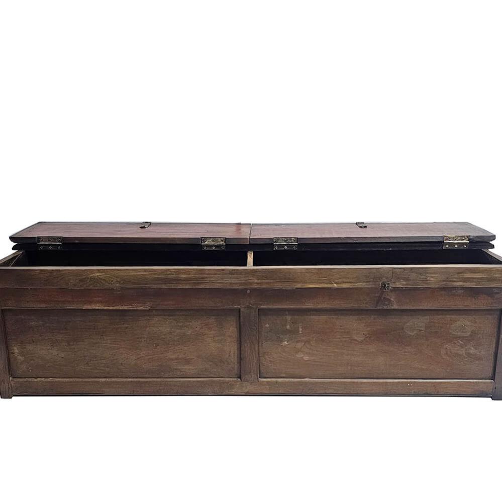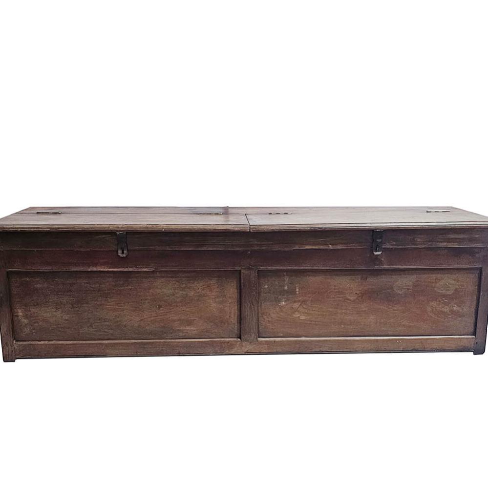 This beautiful old wooden chest is more than just storage. With its sturdy construction, worn surface and double lid, it hides four separate compartments – perfect for keeping shoes, blankets or toys neatly organised. But it doesn’t stop there. Thanks to its elongated shape and flat top, the chest also works perfectly as a bench. A functional and charming solution for the hallway, by the dining table or at the foot of the bed. It’s pieces like this that bring warmth and character to a room. It does the job, keeps your memories and invites you to take a seat.
