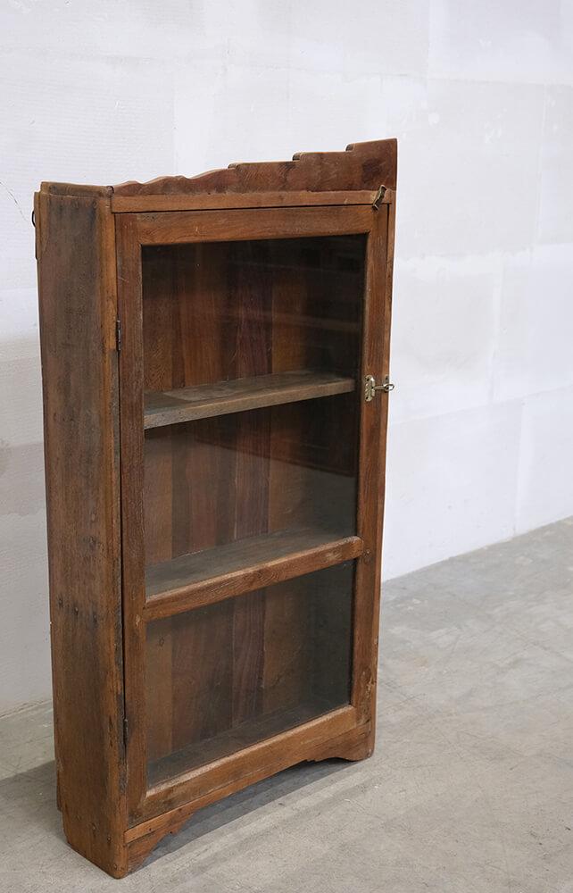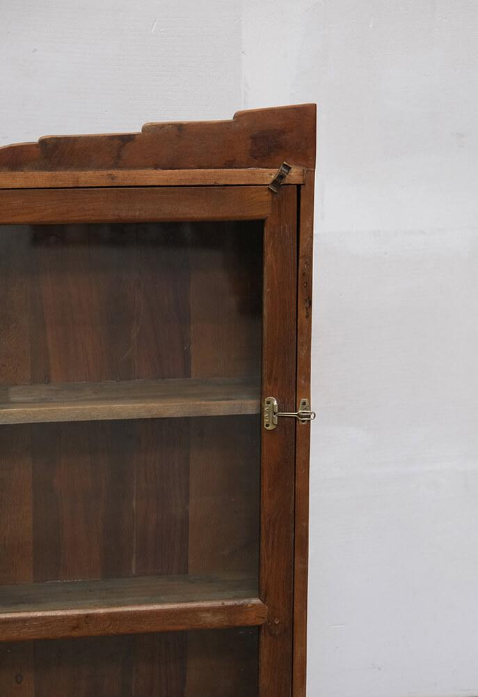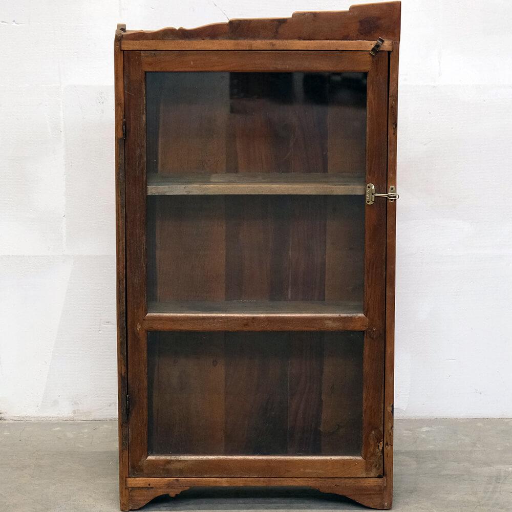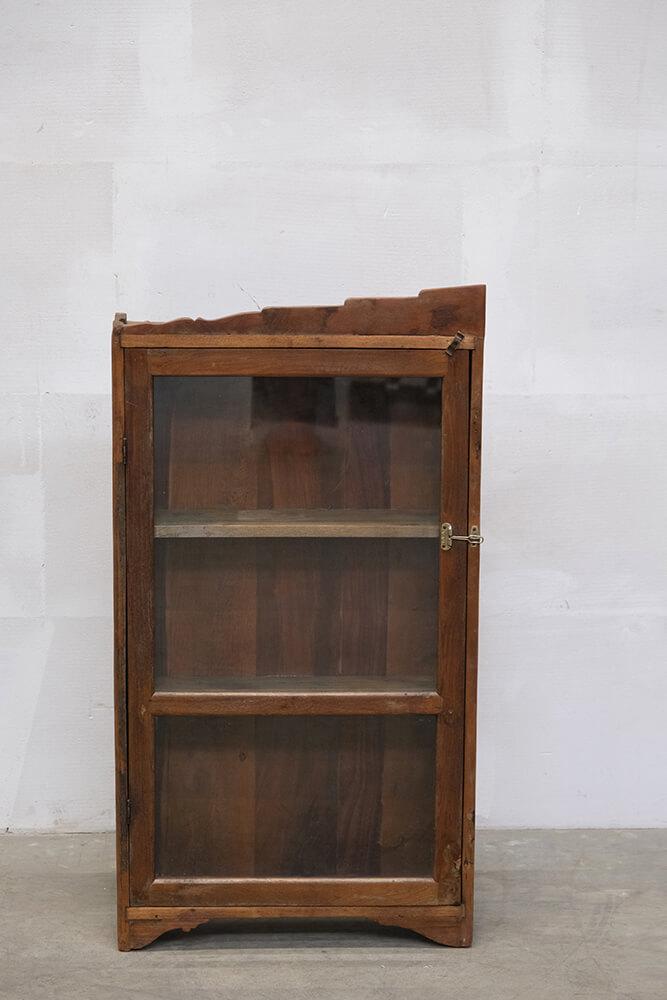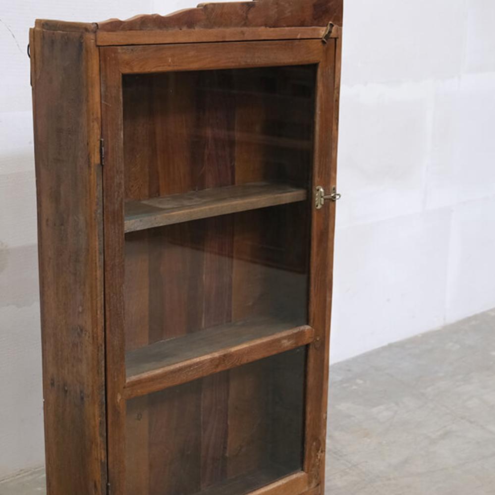 This wall cabinet has authentic charm and plenty of history. With its worn wooden frame and simple glass door, it clearly shows signs of a long life filled with experiences. The raw edges add character to any room, while the interior shelves provide practical storage for your most treasured items. A piece of furniture that does not strive for perfection but proudly showcases its rustic style and unique details. Ideal for those who appreciate upcycled decor with soul and edge.