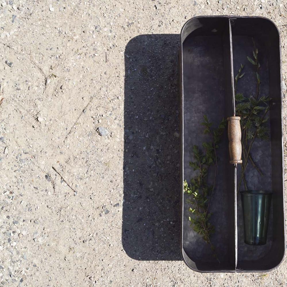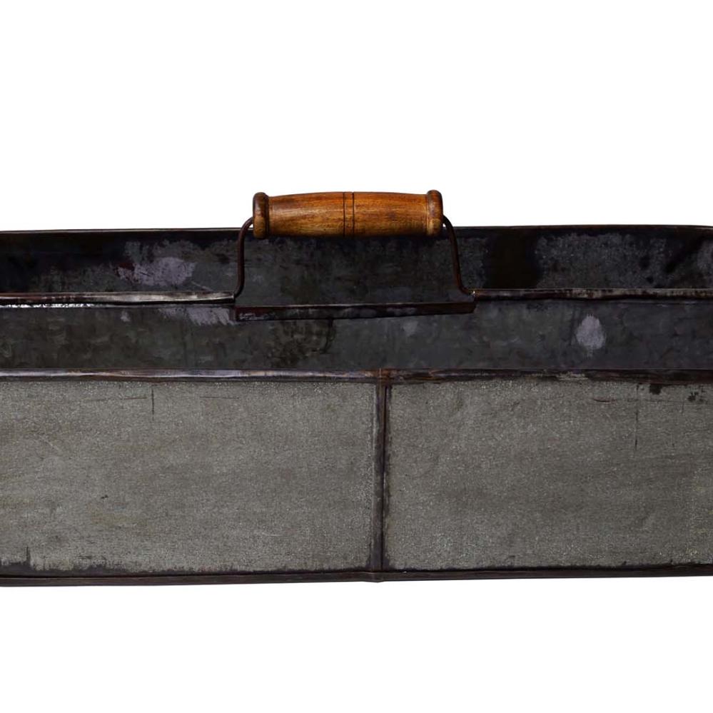 This rustic storage iron box is a practical must-havewith two rooms and a delicate wooden handle. The box has a raw authentic look and is ideal for flowers and herbs or storage of your small garden tools. The patinated look of this box gives an edge to the decor.